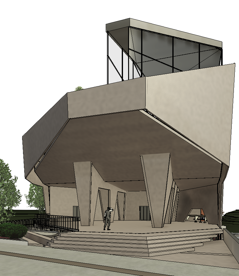 a beautifully rendered architectural elevation of a contemporary building with moss covered concrete walls blending into its natural surroundings the fa ade is softened by lush greenery and climbing vegetation with large glazed openings that reflect the landscape the composition highlights the harmony between built form and nature with careful detailing balanced proportions and a natural color palette of greens greys and earthy tones atmospheric lighting enhances texture and depth