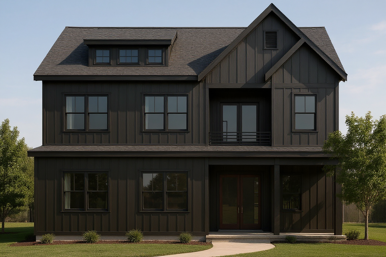 render the building in this image with soft textures the roof is a black the walls are lightwood paneling