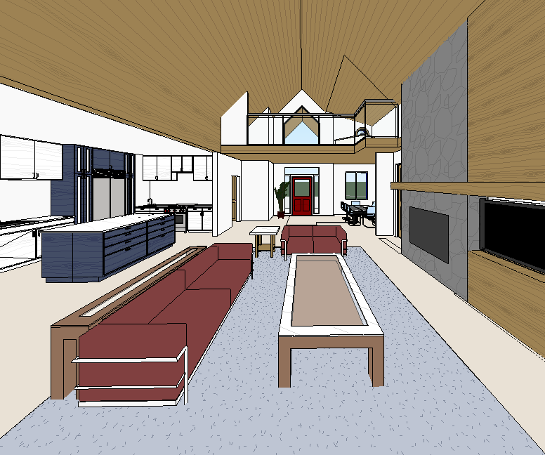 make look realistic add natural lighting make daytime make daytime add furniture and lighting fixtures wood floors the ceiling is white ocean background