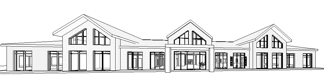 clubhouse vice beige cast stone building black standing seam roof wide glass opening