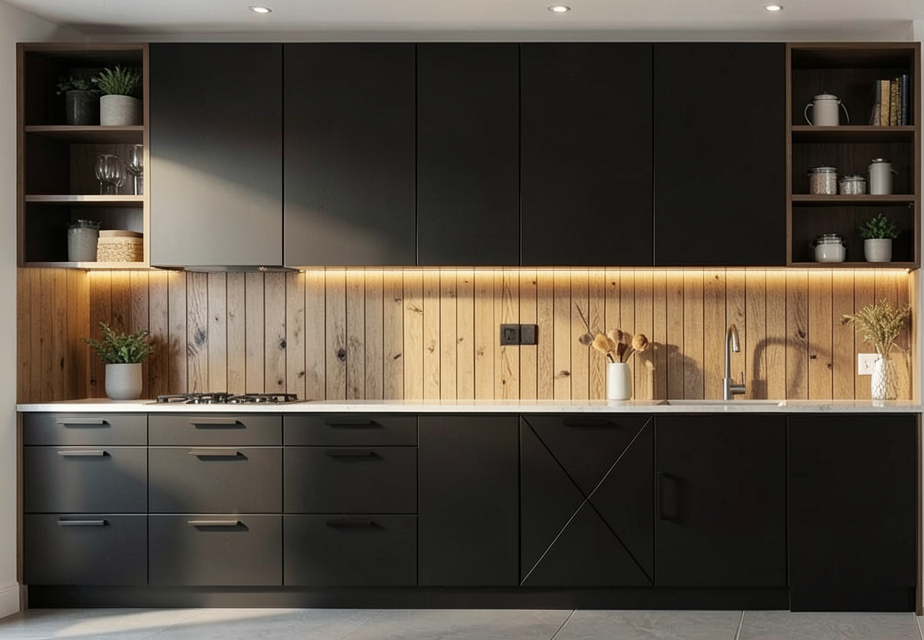 ud lej kuchy v carbonov barv v kombinaci se d evem