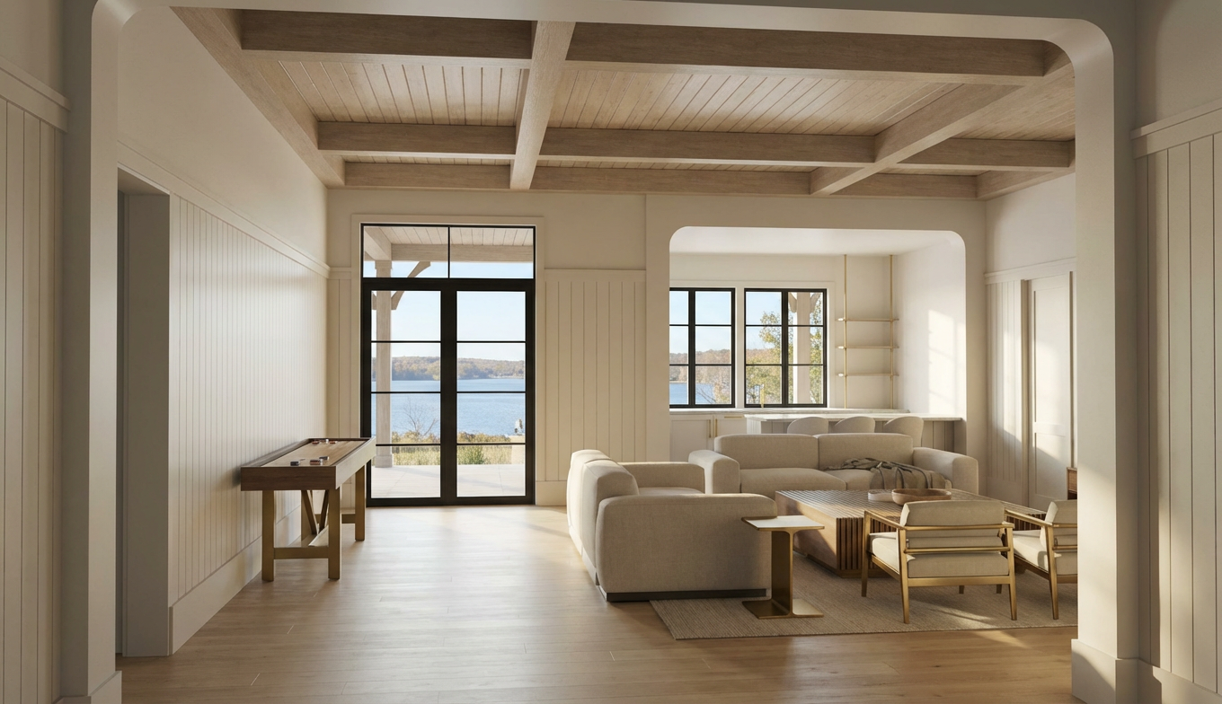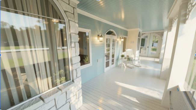 create a front porch with warm ambience the wall to the right should have beadboard 1 3 of the way up that seamlessly transitions into window screens
