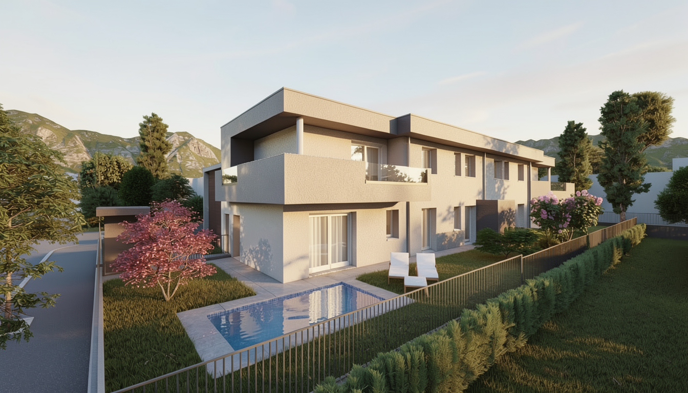 add a cozy modern living room and a dining area in the back