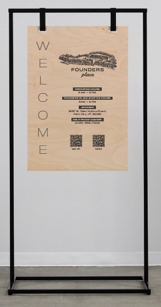 i m trying to make a substantial welcome sign that is in your face like a music composer s stand to welcome visitor s to the founders place development in deer valley utah this is a draft of what our marketing agency made but it feels flat generate alternative image options that are more interesting substantial and aligned with hte quality of the founders place project foundersplace com