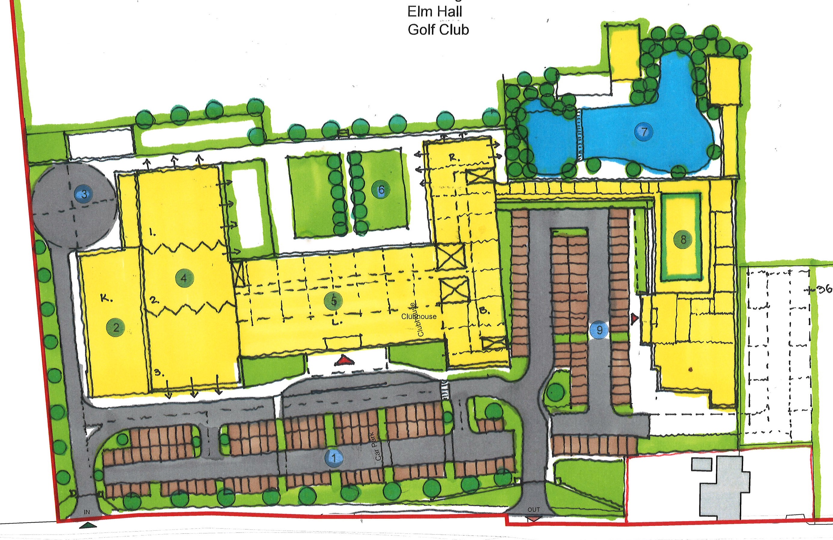 exterior shot aerial concept plan of hotel on landscaped background architecture