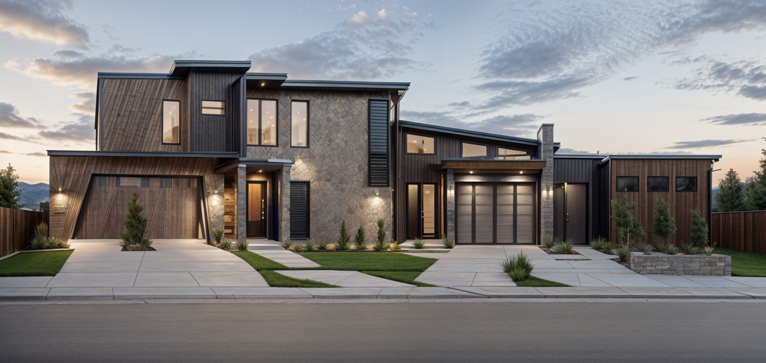 exterior shot ocean background with sunset surrounding trees and minimal landscaping do not crop photo dont make too dark