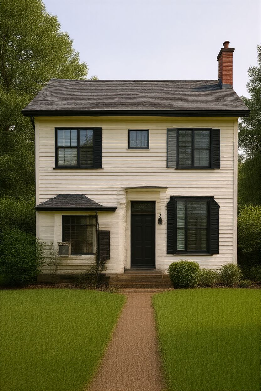 partly cloudy day house is on a cliff overlooking lake erie gray siding white windows white trim