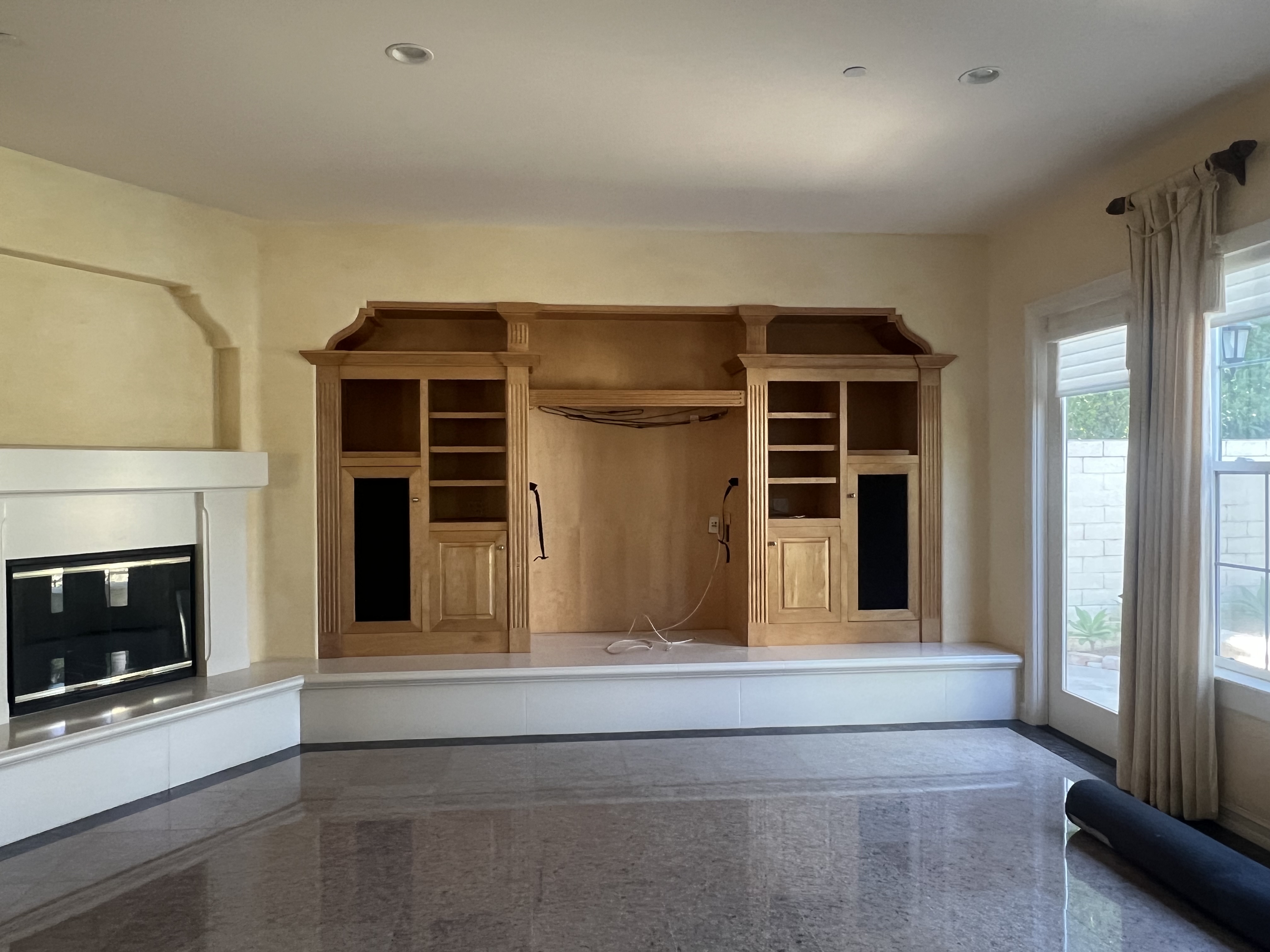 create a new modern lay out and design for this family room wall