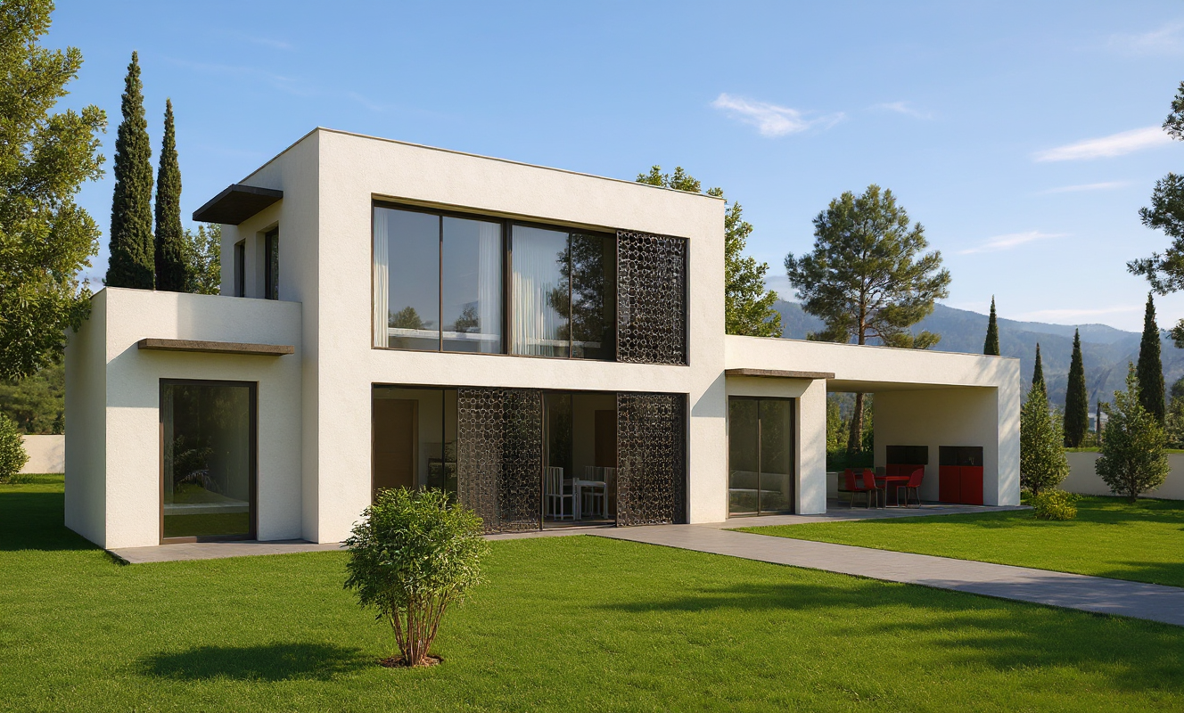 black exposed metal steel work from with cream brick work infill