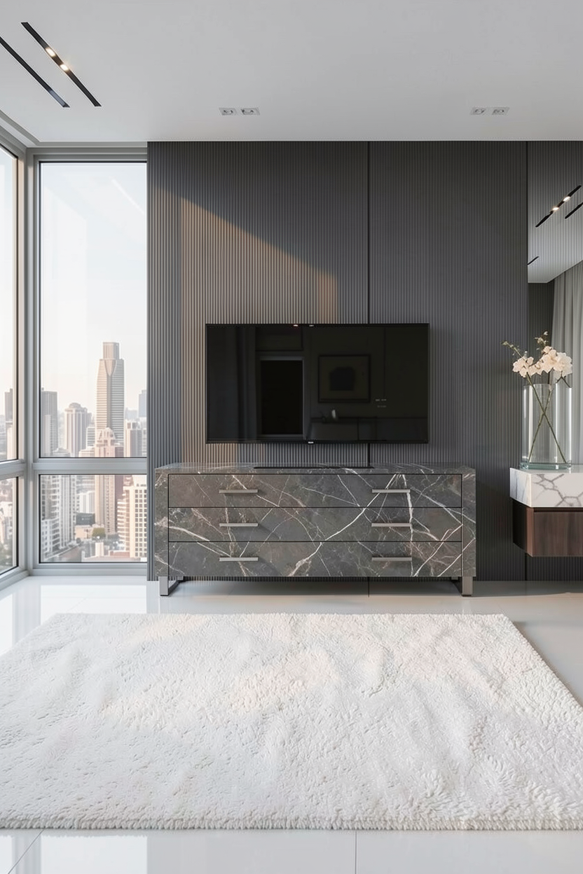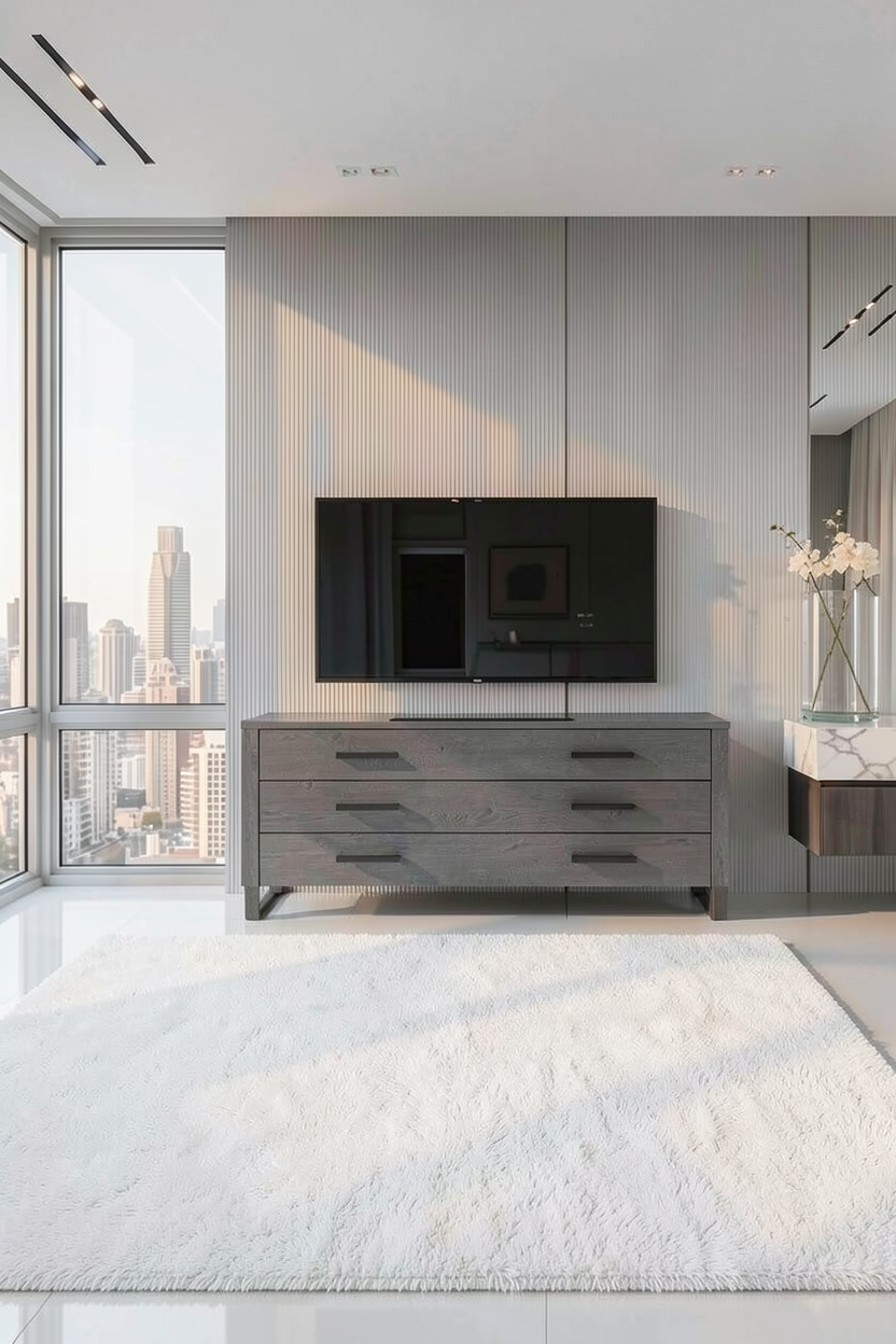 a adir una alfombra blanca mas grande rectangular