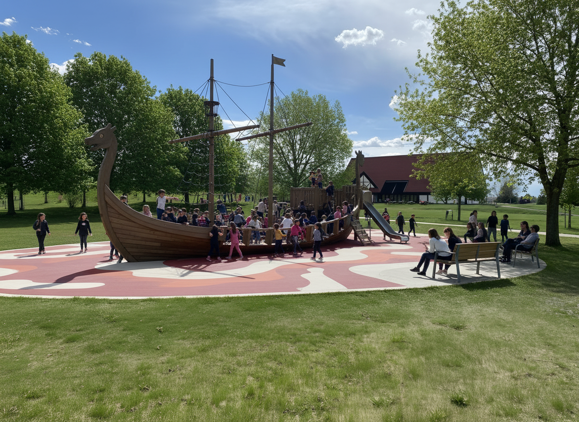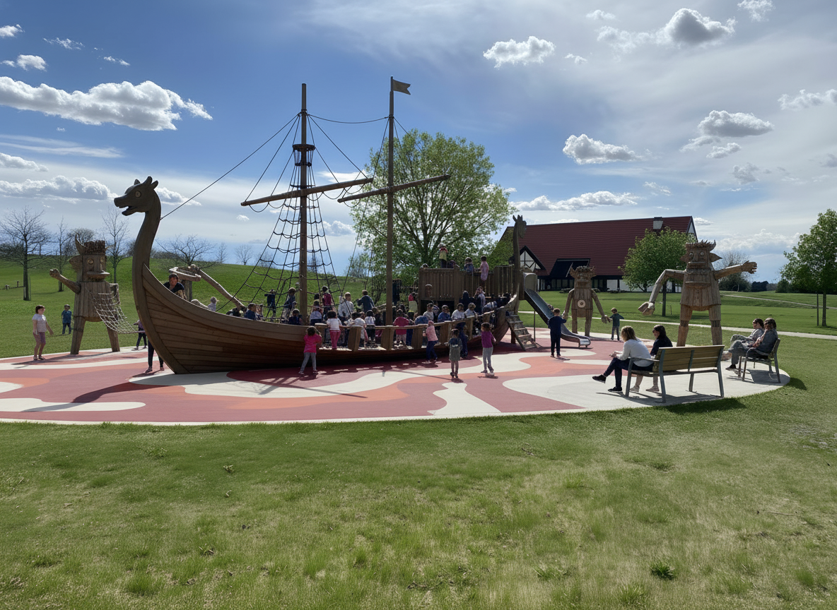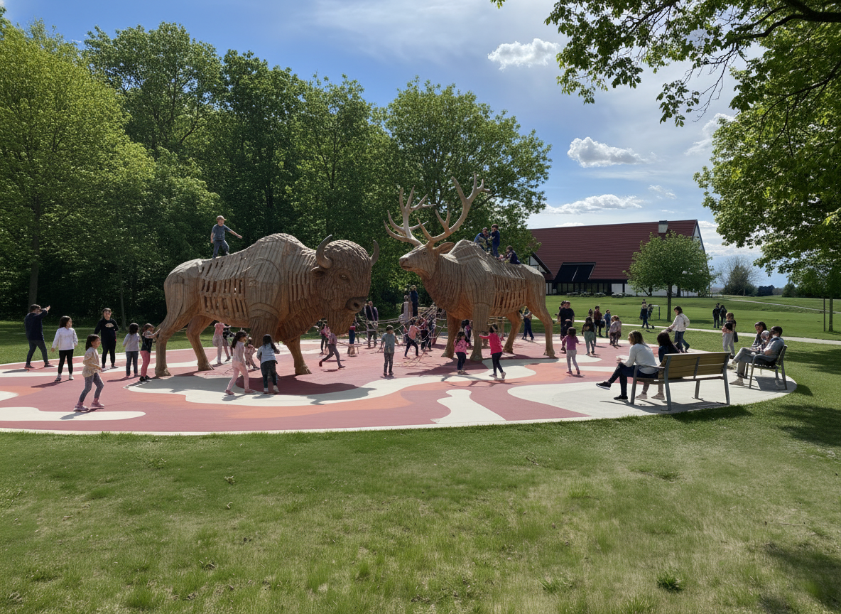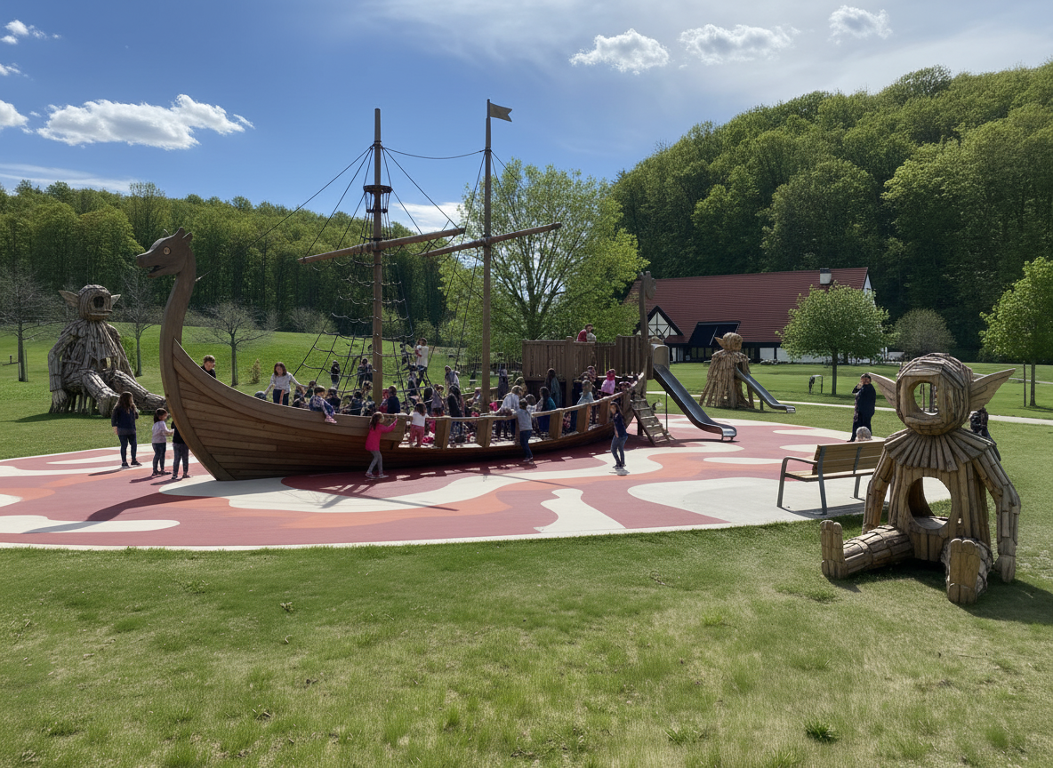 add more trees canopy on all trees replace viking monstrum playground for a thomas dambo troll inspired playground show more than 1 troll