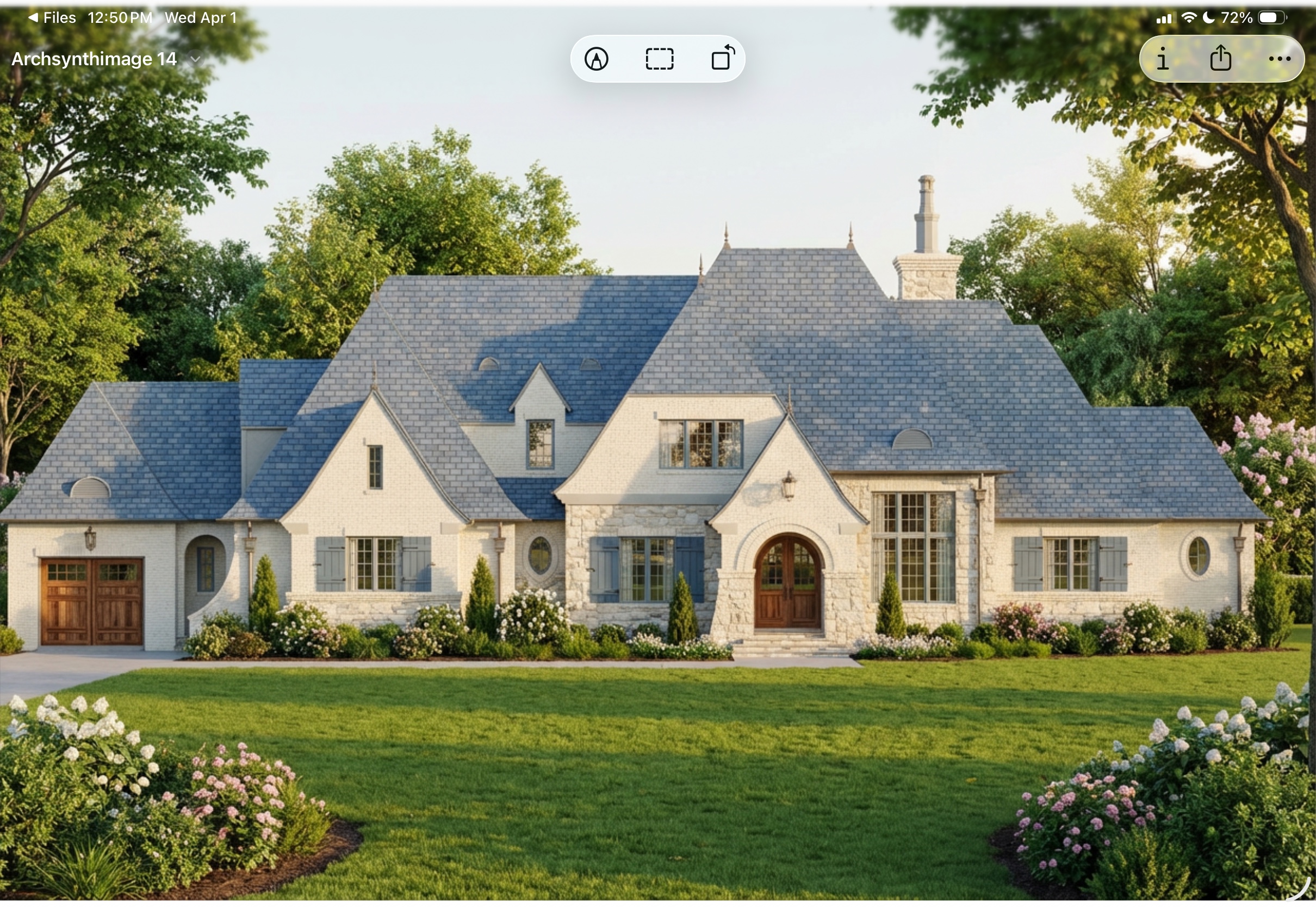 change eaves to black make roof black shutters black windows black stone light beige and gray mix light beige brick lush landscaping turn on lights create more photo realistic