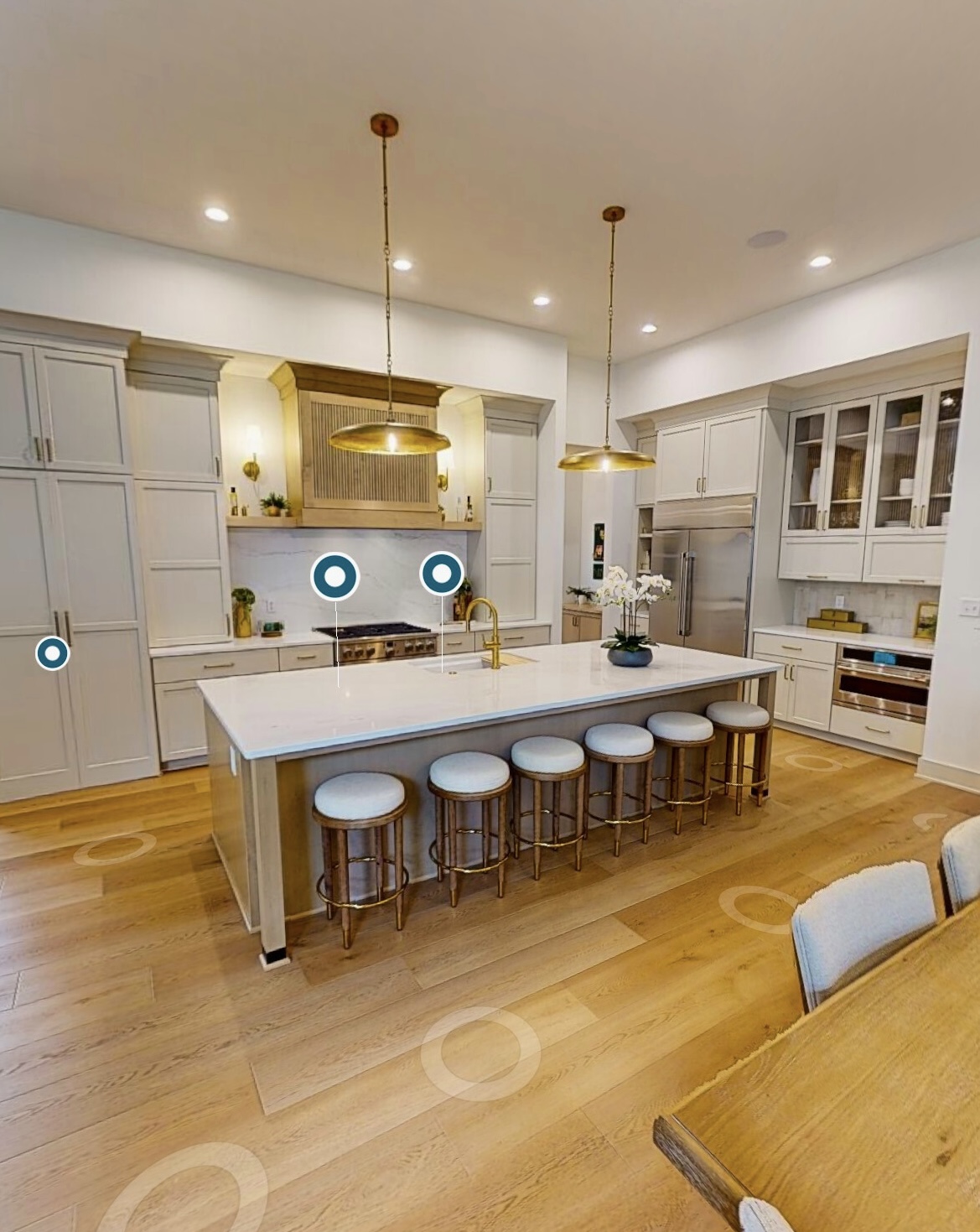 make the stain a medium tone brown white oak on all of the cabinets that are currently painted cream on the wall on the far right side of photo on the island and on the back wall make the range hood iron or paint color