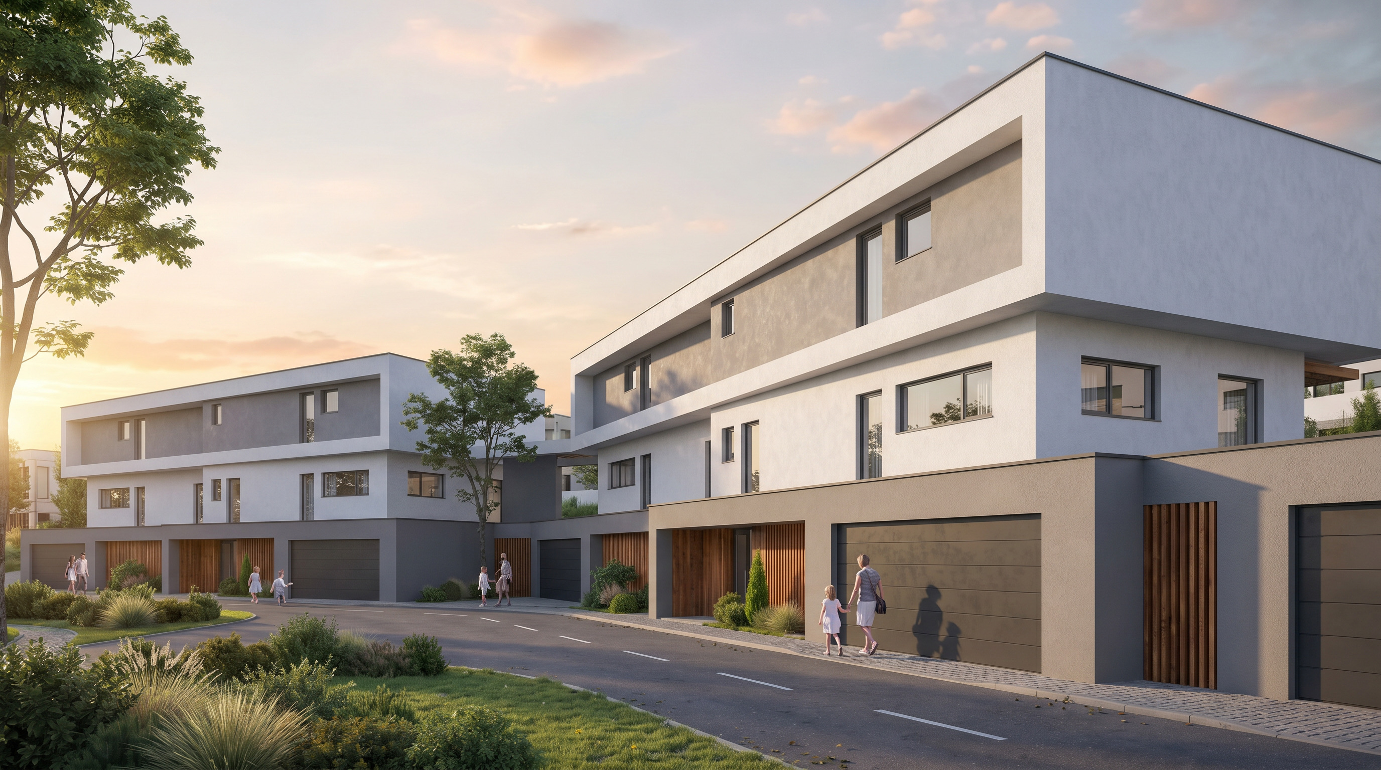 change only wood material with material from the reference image open one garage door and show car parked inside and make garage interior from visible concrete keep everything else unchanged keep other materials unchanged