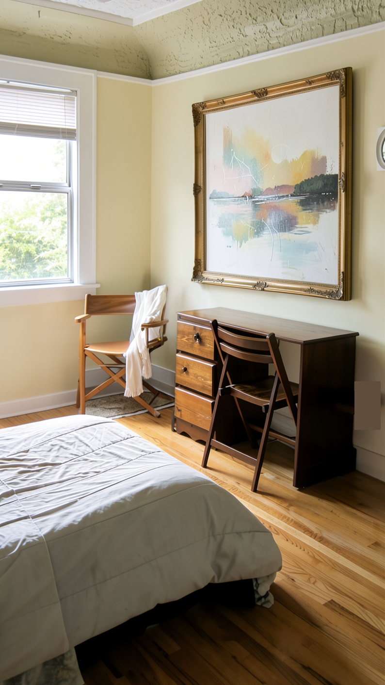 reduce the size of the painting soften the ceiling texture brighten the walls