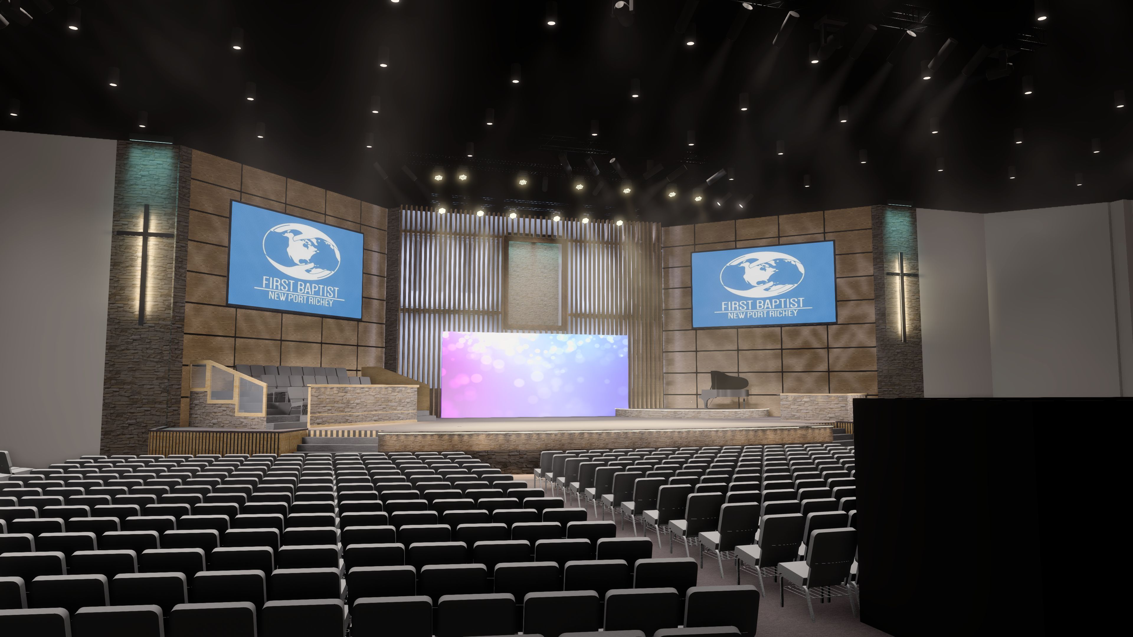 make this look photo realistic add an audience and a pastor on stage