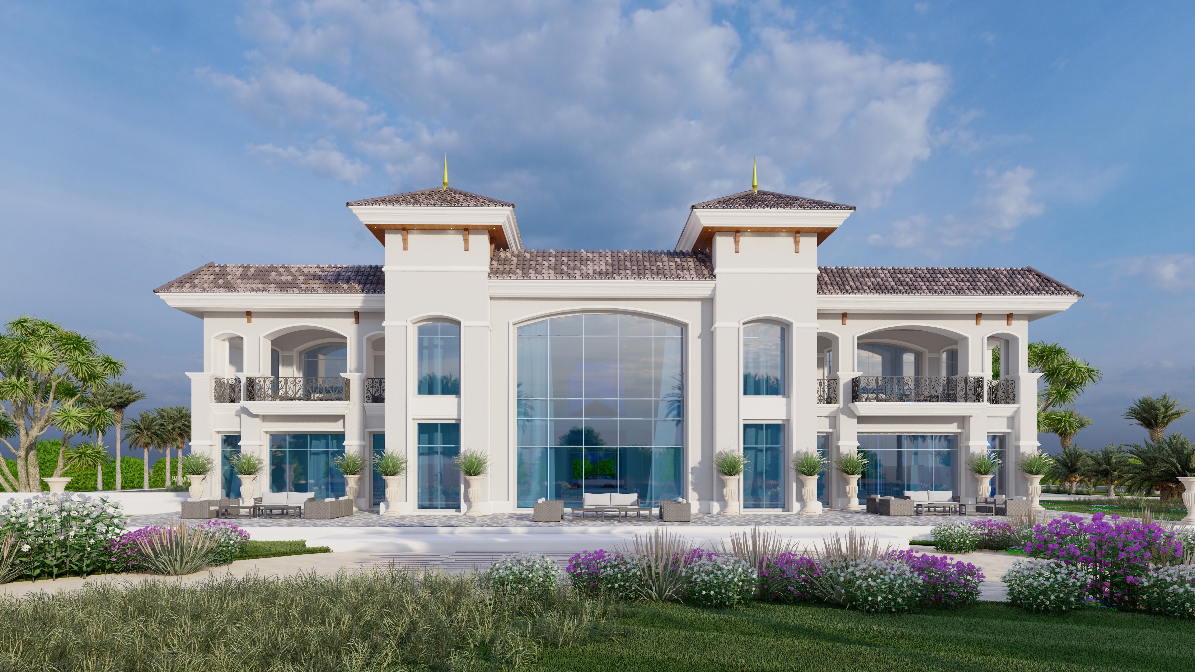make it a realistic render and improve the surrounding don t change any things in the model blue glass