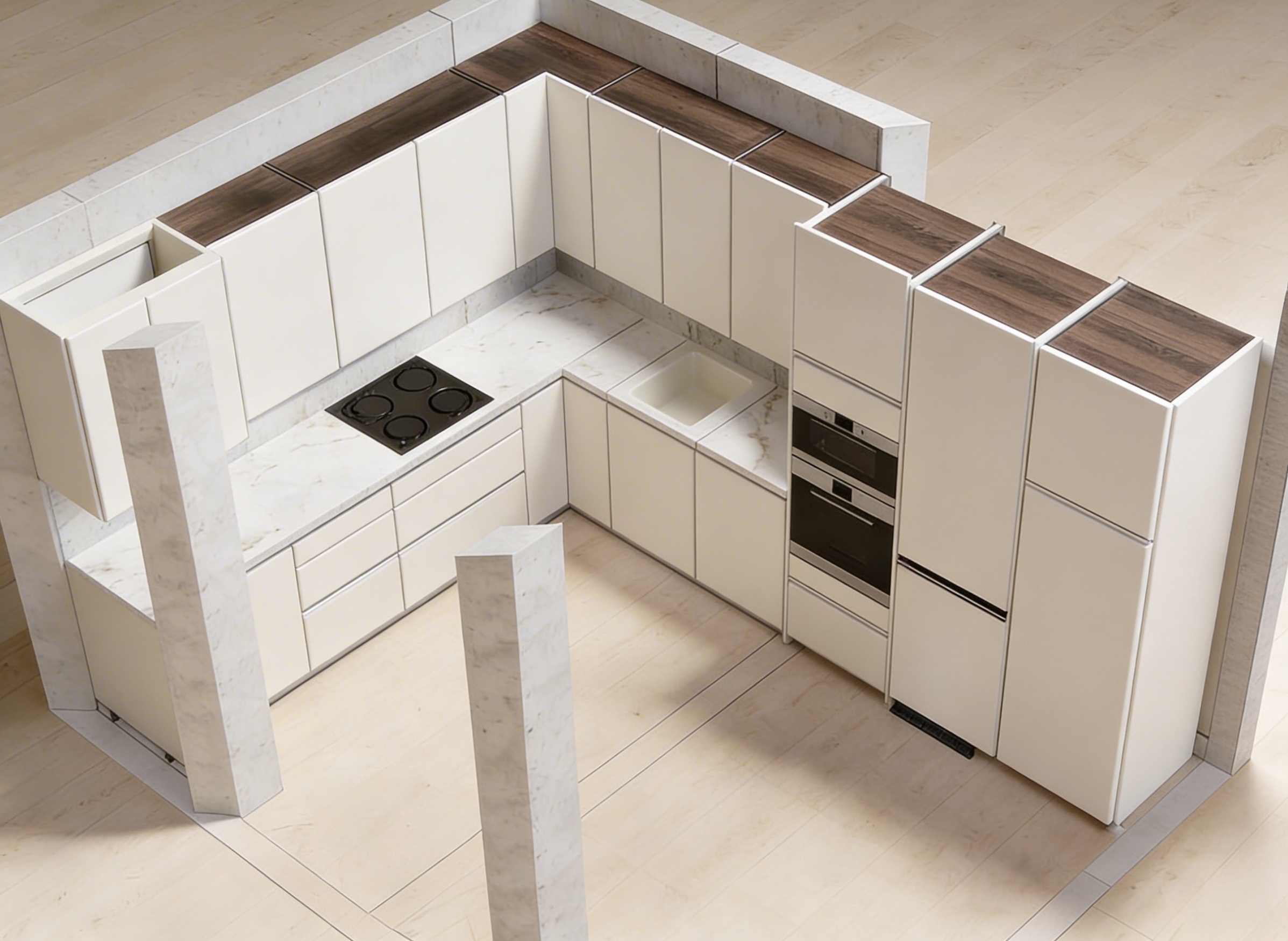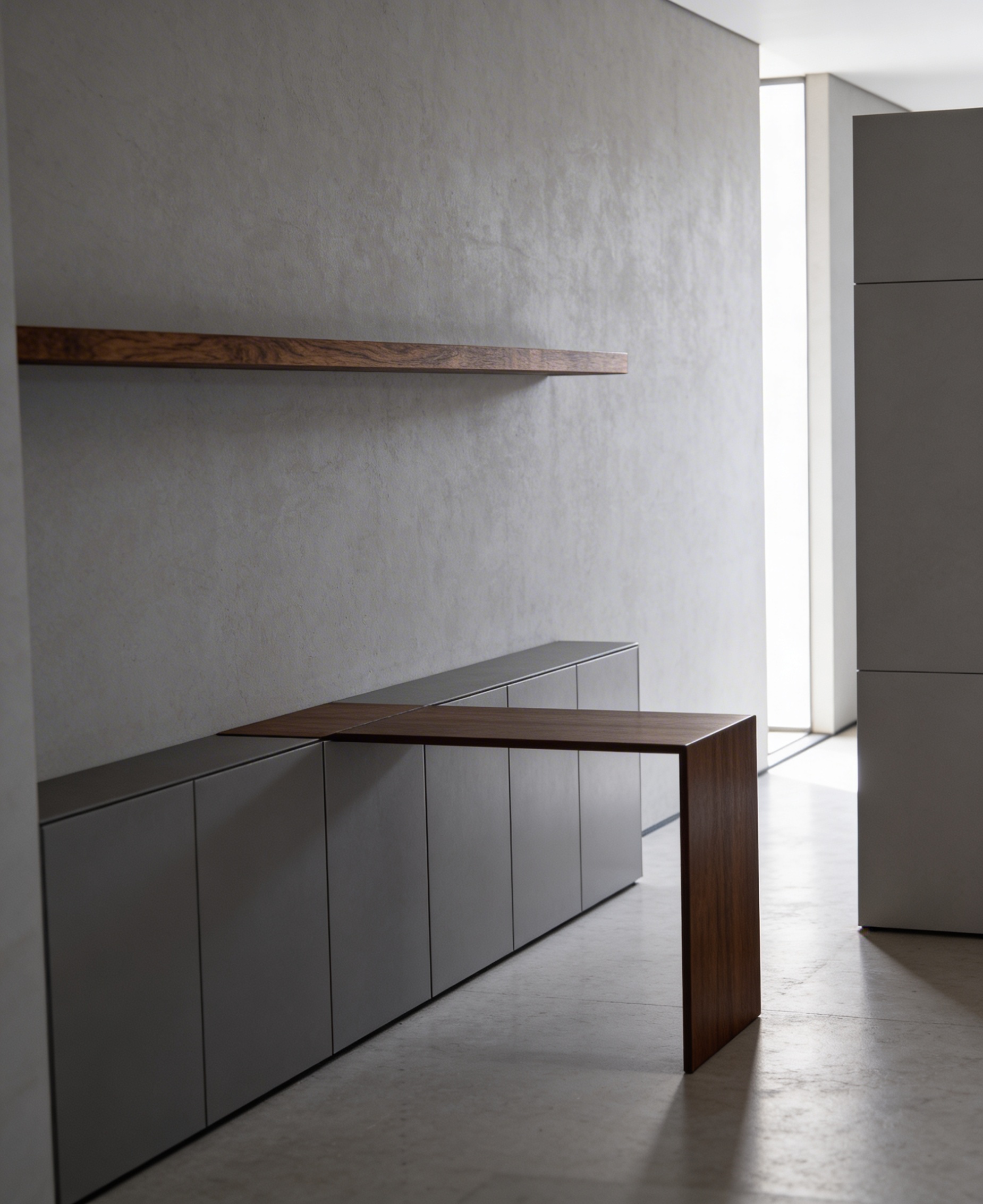 luxury showroom interior ultra high end architectural visualization modern minimalist design with premium materials large open space with clearly defined zones elegant office workspace with designer desks and ergonomic chairs sophisticated coffee lounge area with plush seating and marble coffee table feature wall clad in natural warm wood panels with vertical rhythm matte black ceiling with exposed technical elements integrated track lighting and multiple adjustable spotlights casting dramatic focused light soft ambient lighting balanced with accent lighting polished stone flooring glass partitions refined textures depth and layering cinematic composition wide angle 24mm eye level perspective photorealistic ultra detailed global illumination ray tracing soft shadows high contrast warm neutral color palette luxury atmosphere 8k render marble floor