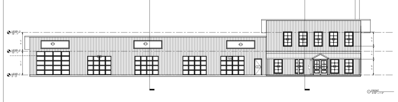 create a picturesque architectural rendering of a charming two story country home the house features a gabled roof and dormer windows use a soft cream color for the exterior walls and a contrasting deep slate blue for the window trims and shutters the metal roof should be in a neutral gray tone garage doors stand out with a natural wooden texture surround the house with lush green landscaping and vibrant garden flowers in shades of red yellow and purple capture a serene and inviting atmosphere under a clear blue sky with soft fluffy white clouds and warm sunlight casting gentle shadows