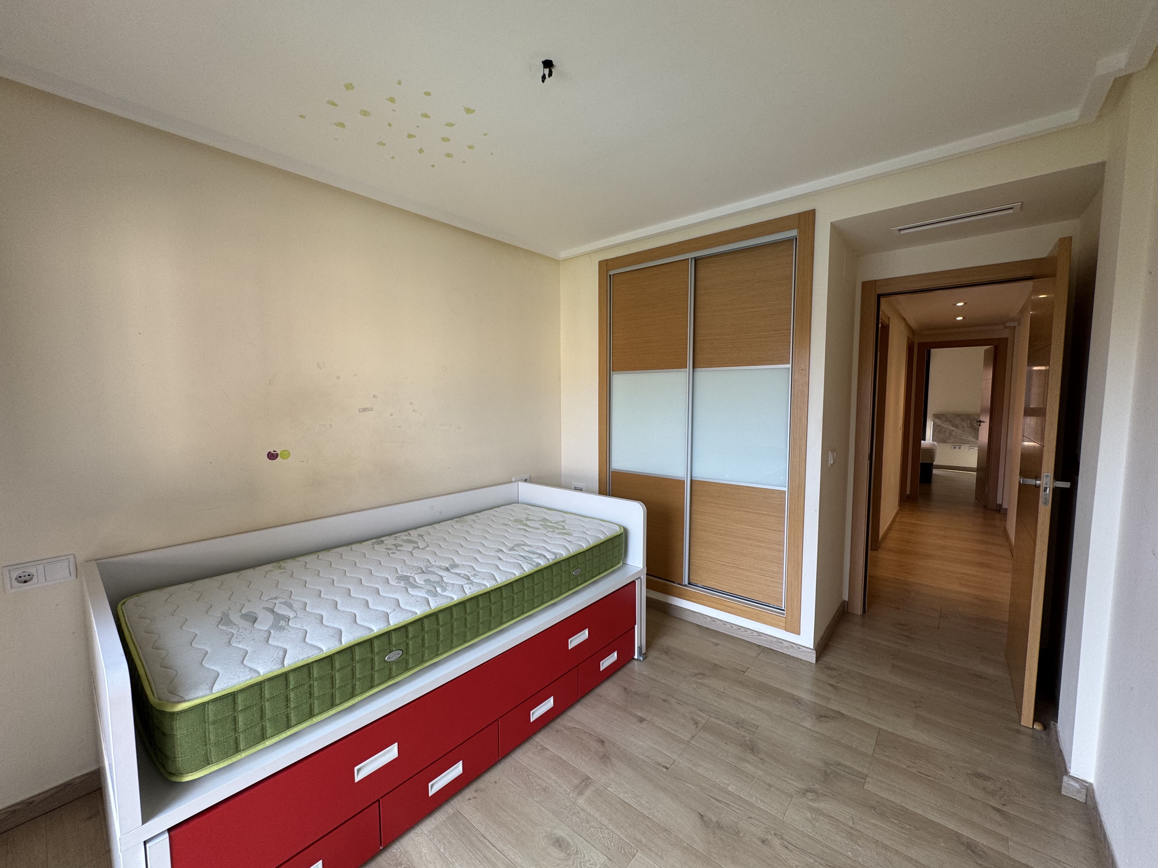 sobre esta imagen reviste las puertas correderas del armario empotrado y los frentes de cajones rojos con papel vin lico tipo lino en tono beige gris ceo