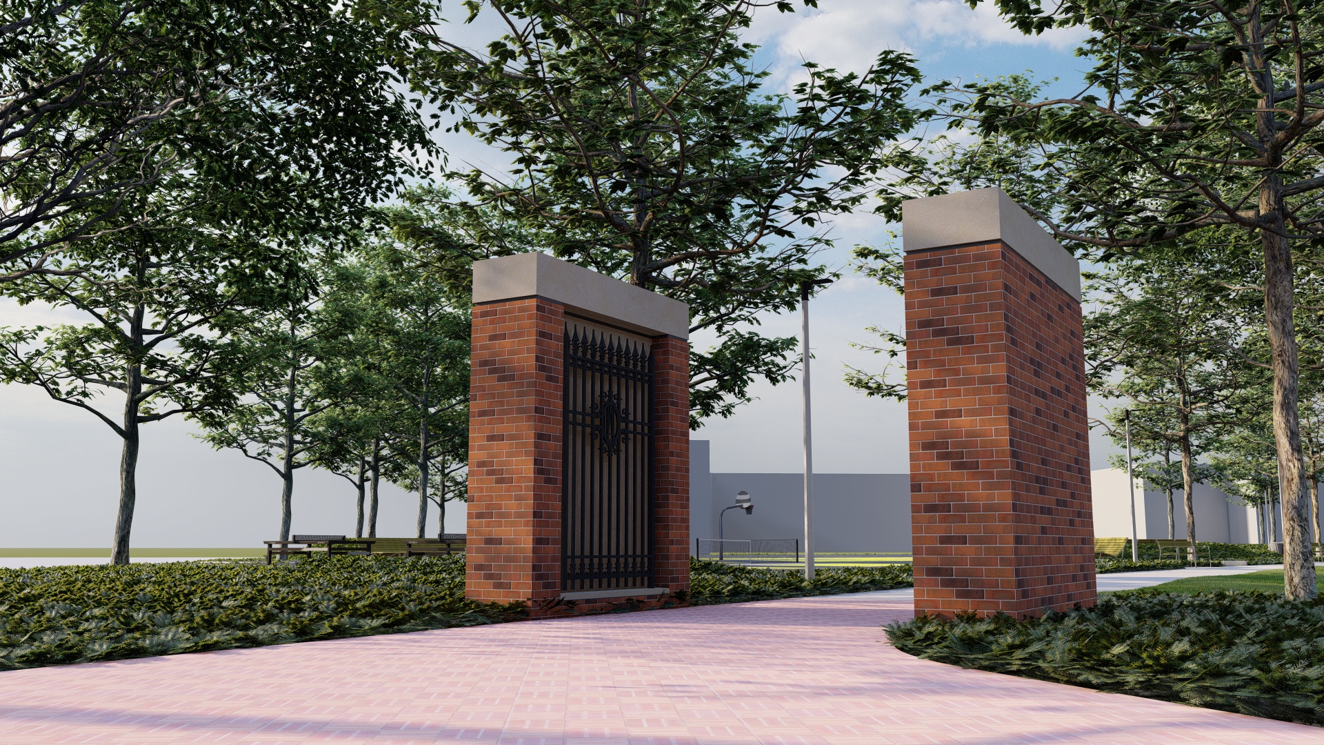 show university of iowa students walking along path plant beds shall be native iowa short grass prairie show 2 3 students in foreground