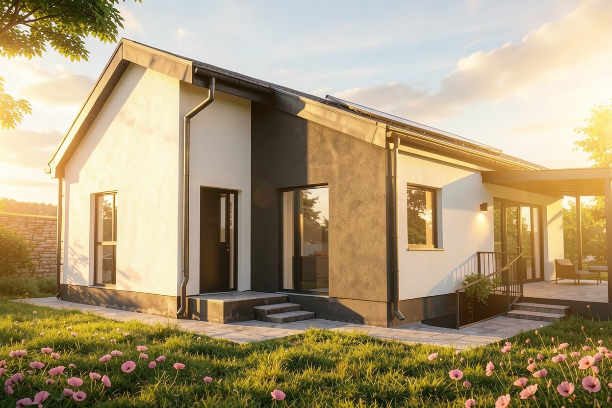 can you generate a shower that is 5 foot long and 4 feet wide looking from the bathroom vanity towards it with the shower head on the left use the reference image for the tile the tile in the left of the image needs to be on the left and right walls and the shower floor the tile on the right needs to be the main back wall of the shower the small tile in the center needs to be the bathroom floor please make sure to match the tile colors in the reference photo the rest of the bathroom is scandinavian organic modern in style