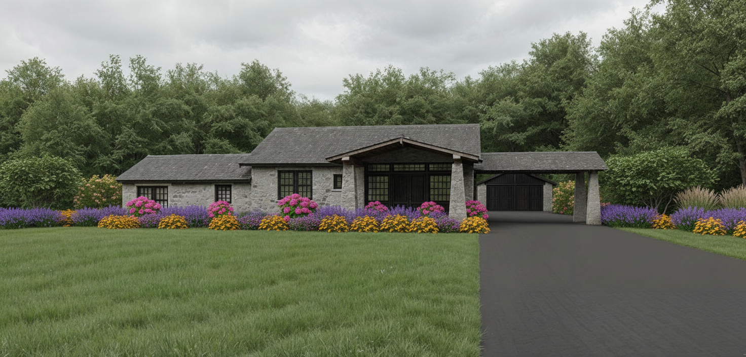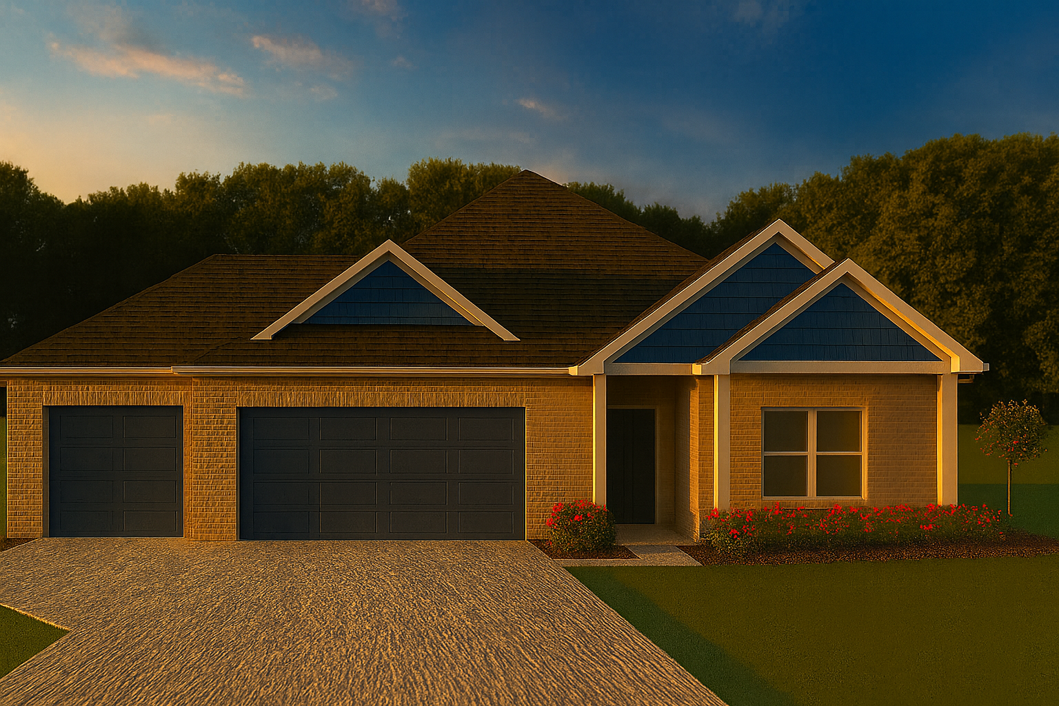 brown gable siding and brown garage doors