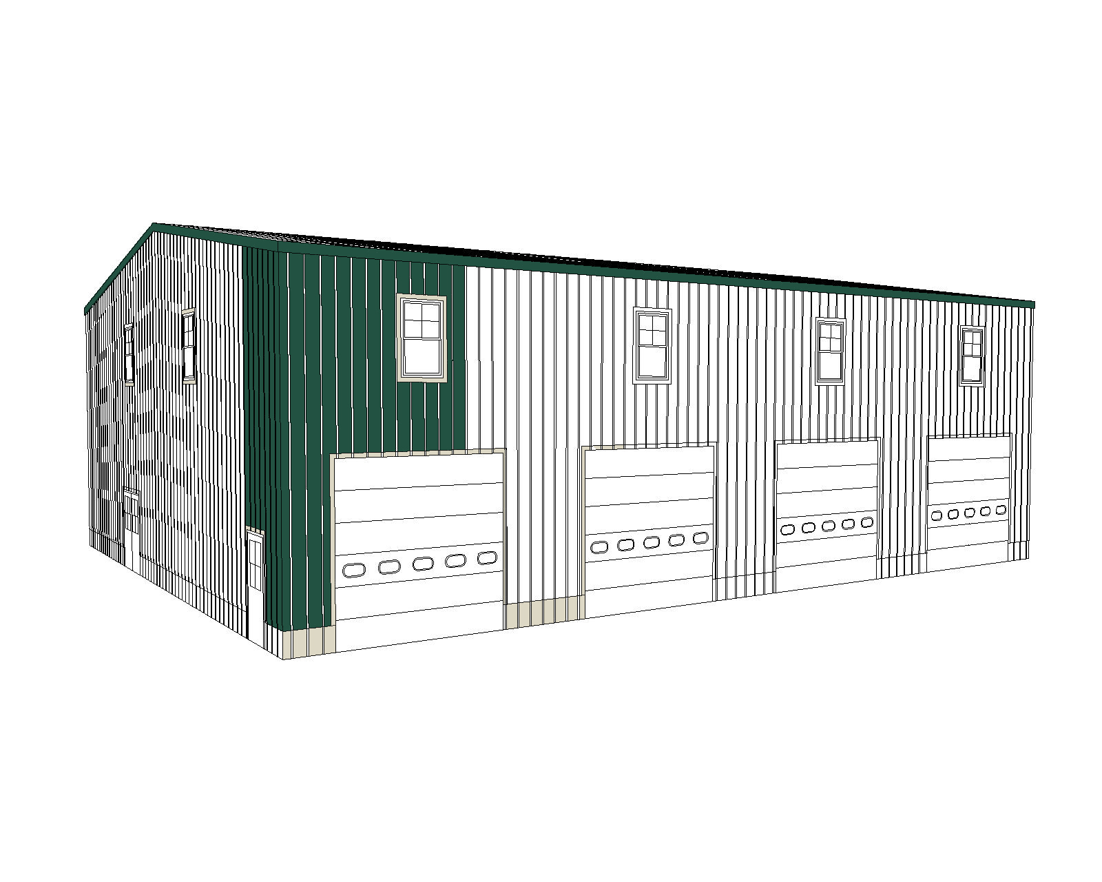 photo realistic image with a concrete driveway in front of garage doors and to the side