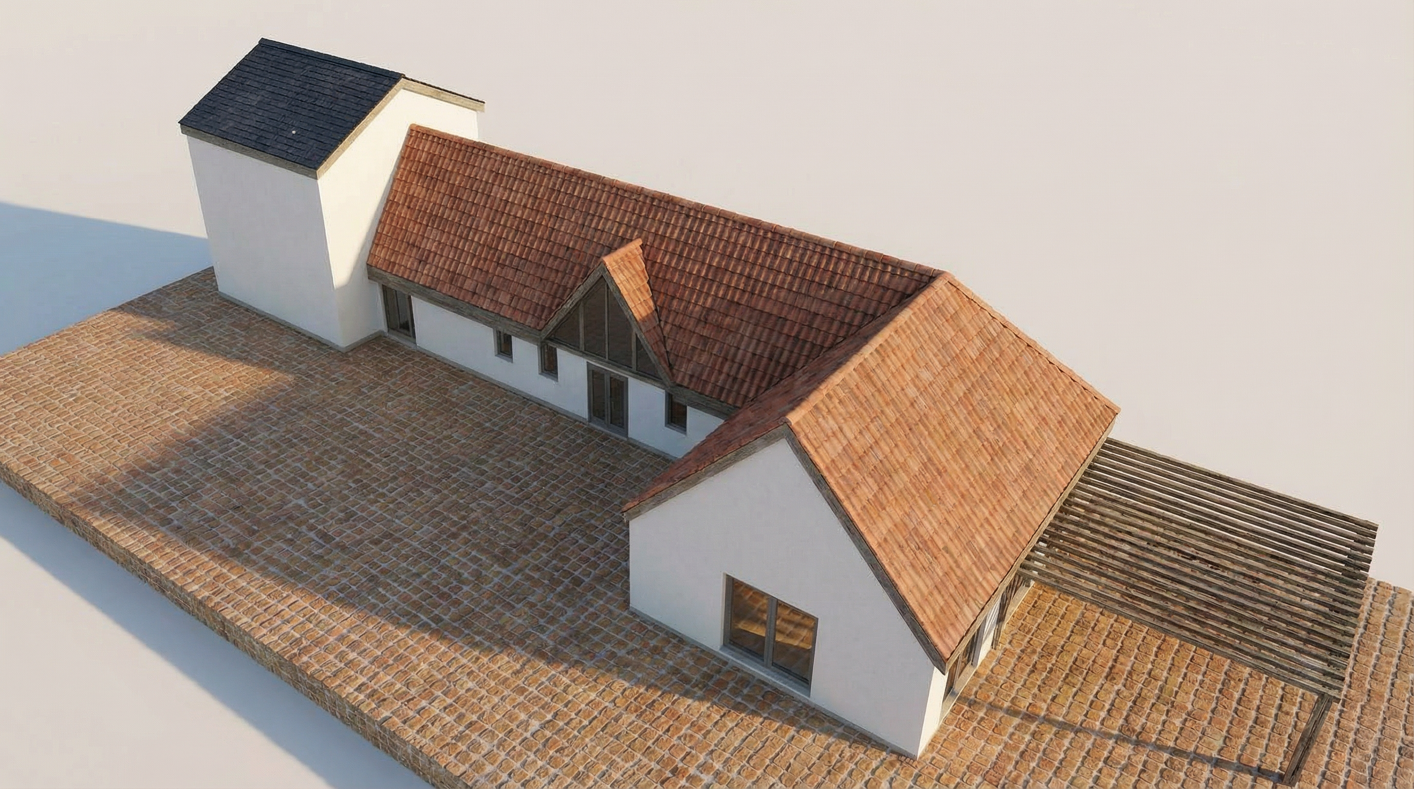 add more trees place a snowman at the access to the building add lighting to the entrance area