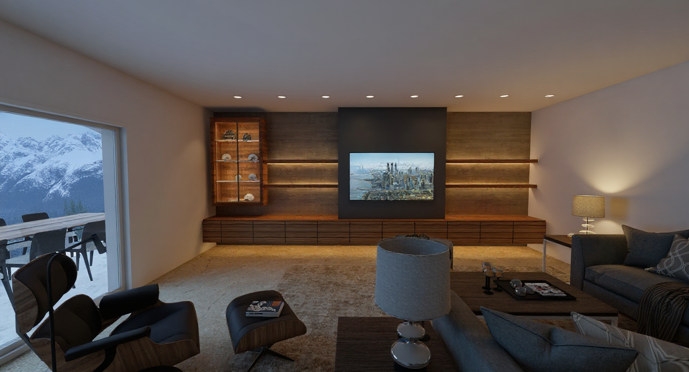 quiero un ambiente nordico iluminado con tiras de led debajo de las estanterias las lamparas iluminadas architecture