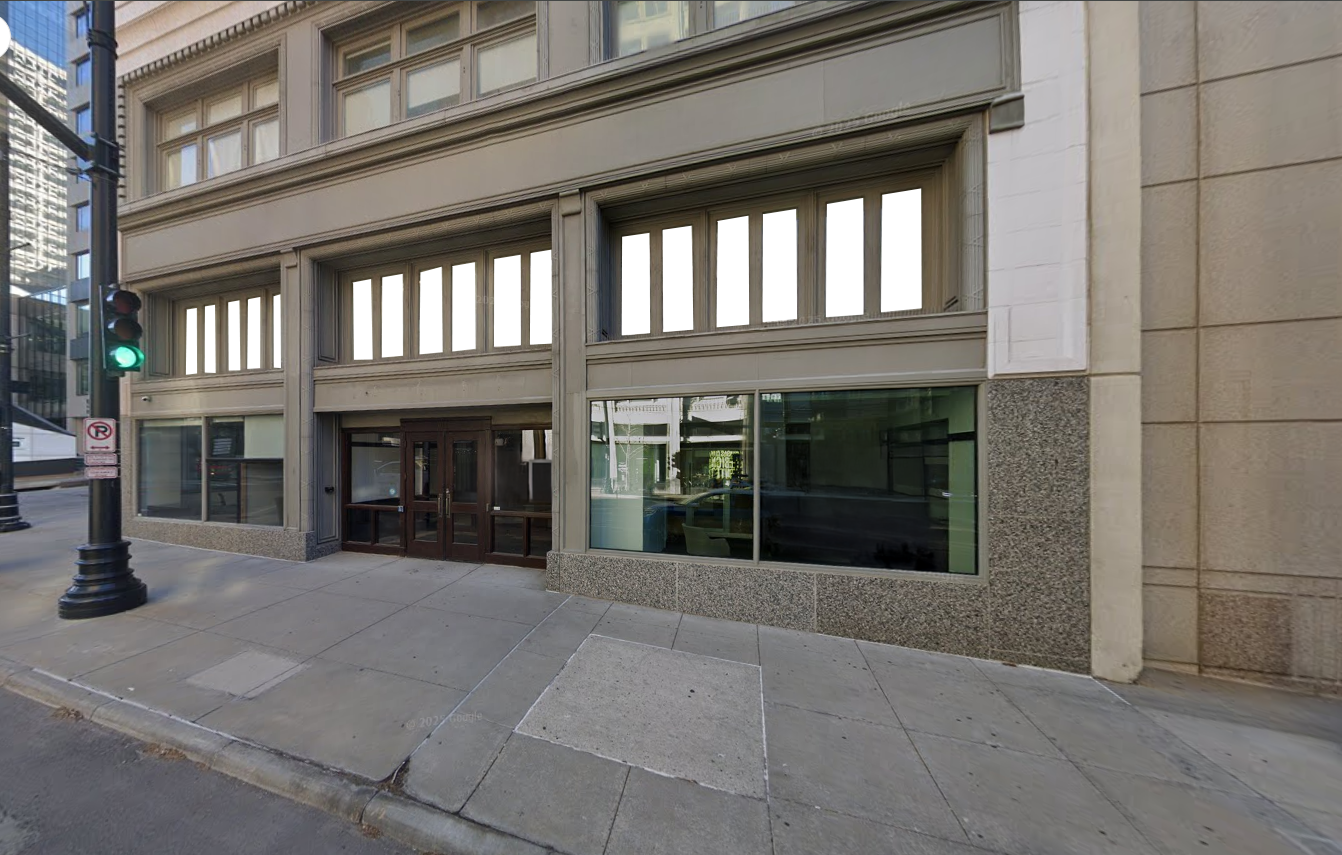 make realistic warm lighting at rush hour a fall evening with leaves on the ground people going home from work storefront is a restaurant