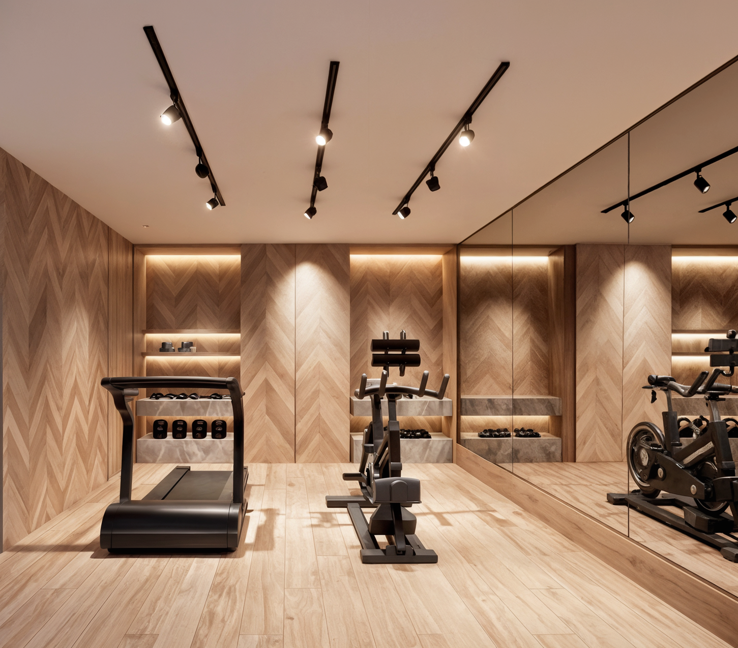 change the machines in the gym for tredmill smith machine multifunctional consideer the refletion in the mirror