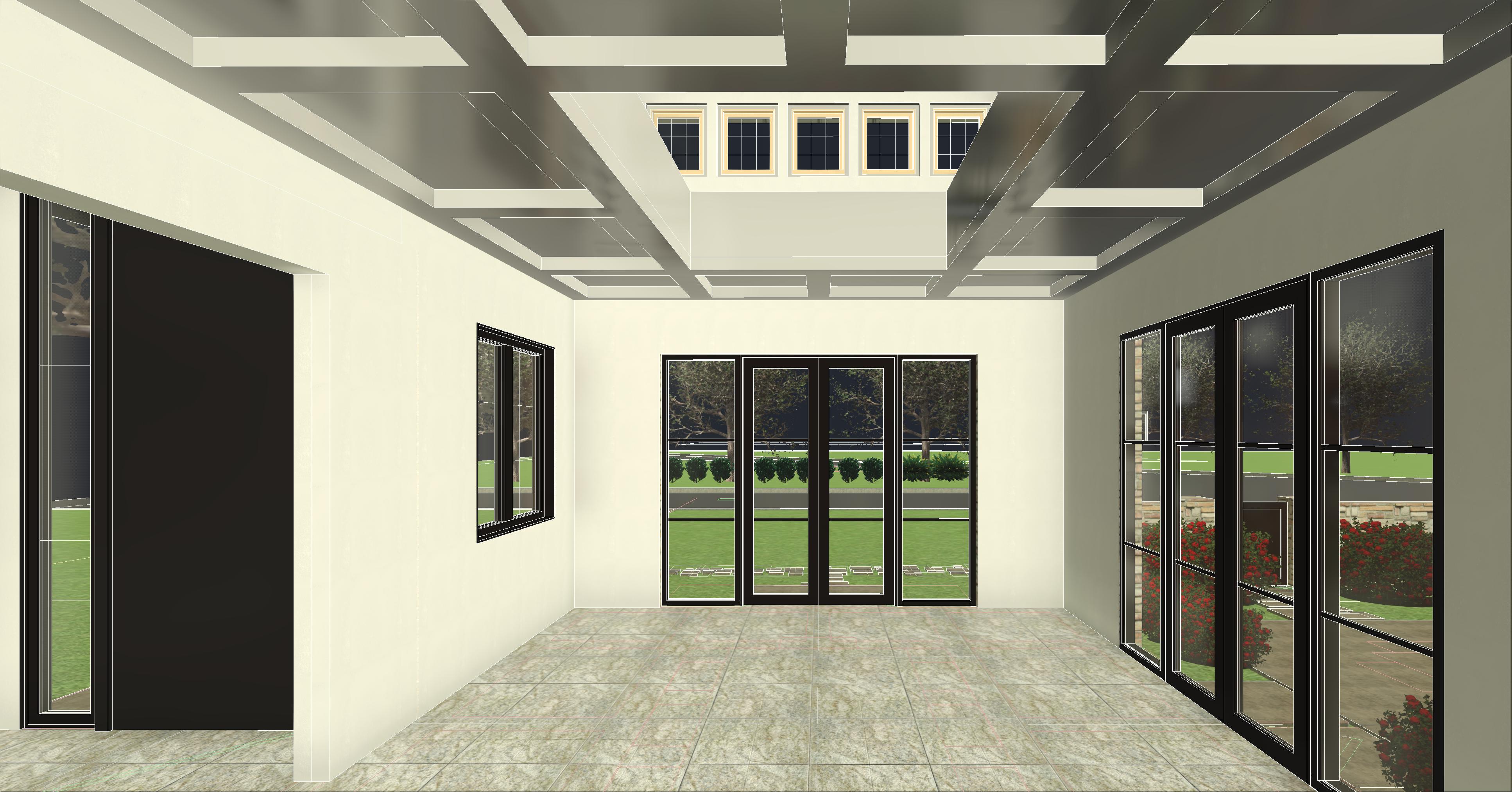 make this image more realistic light venetian plaster walls and ceiling add set dining room table daytime exterior
