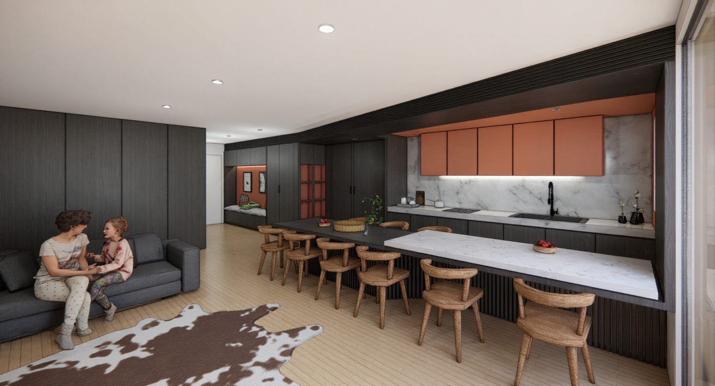 interior shot just increase photorealism the sofa is from a boucle material keep it as it is don t use a cover over it the coffee table is made of travertin the ceiling light should not be so close to the ceiling architecture