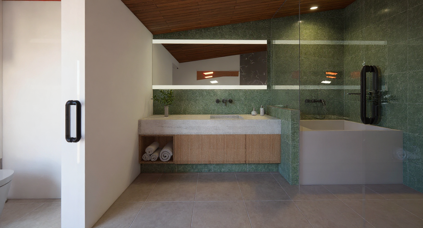 consider that there is a shower screen and it only reflects add a couple of ceiling spotlights for lighting