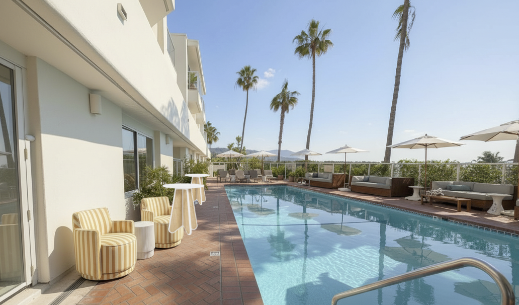 put the yellow chairs in front of the standing white cocktail tables cocktail tables go up against the wall on the left hand side leading down the brick walk way