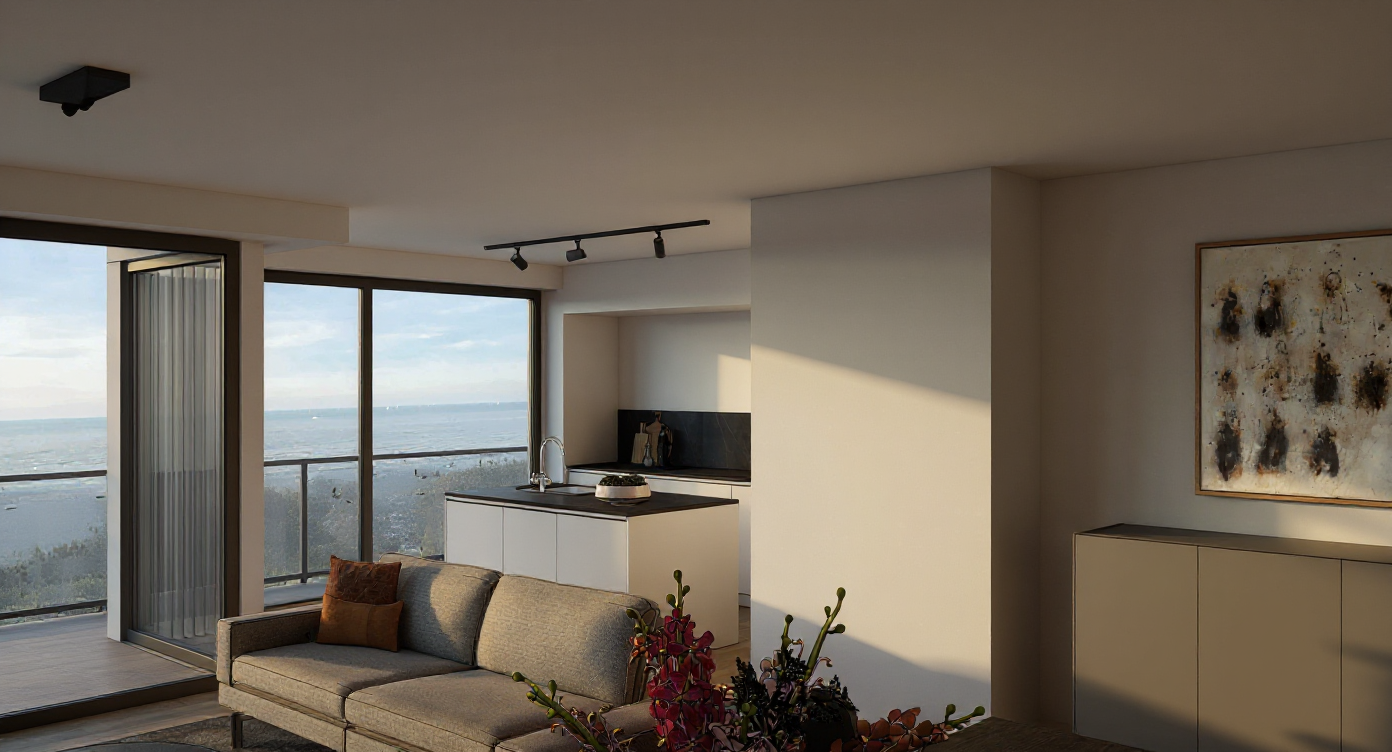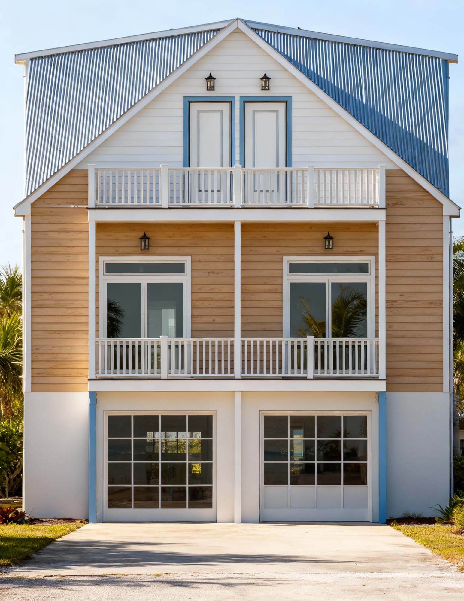 photorealistic small modern two family homes in the background partially covered by trees clear skies day at noon in new jersey the main building is located on the corner of a sidewalk on a side street