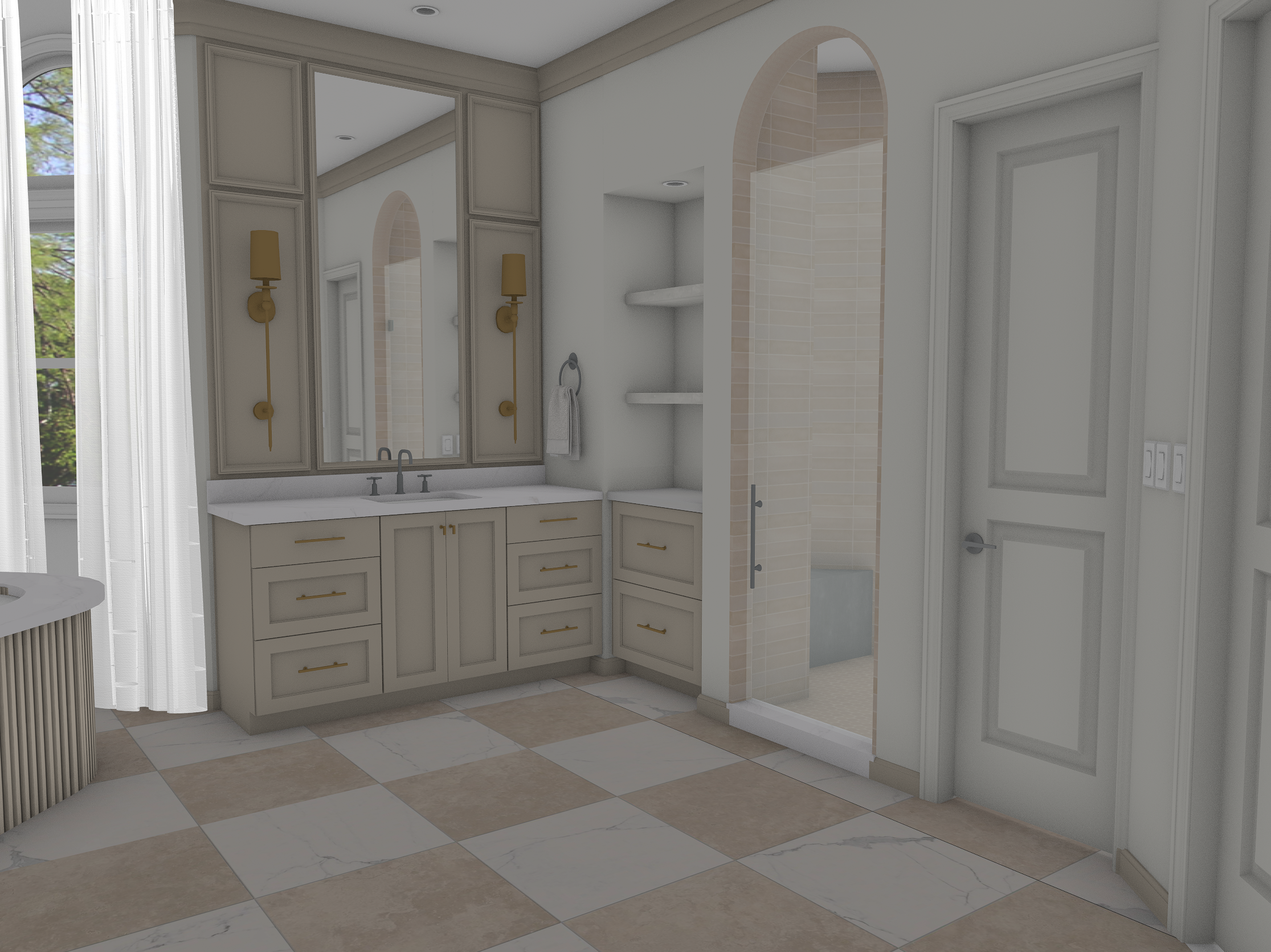 maintain all geometry create a hyper realistic interior rendering at midday this is a first floor room the windows are overlooking a marsh scene the lighting color is 2700k