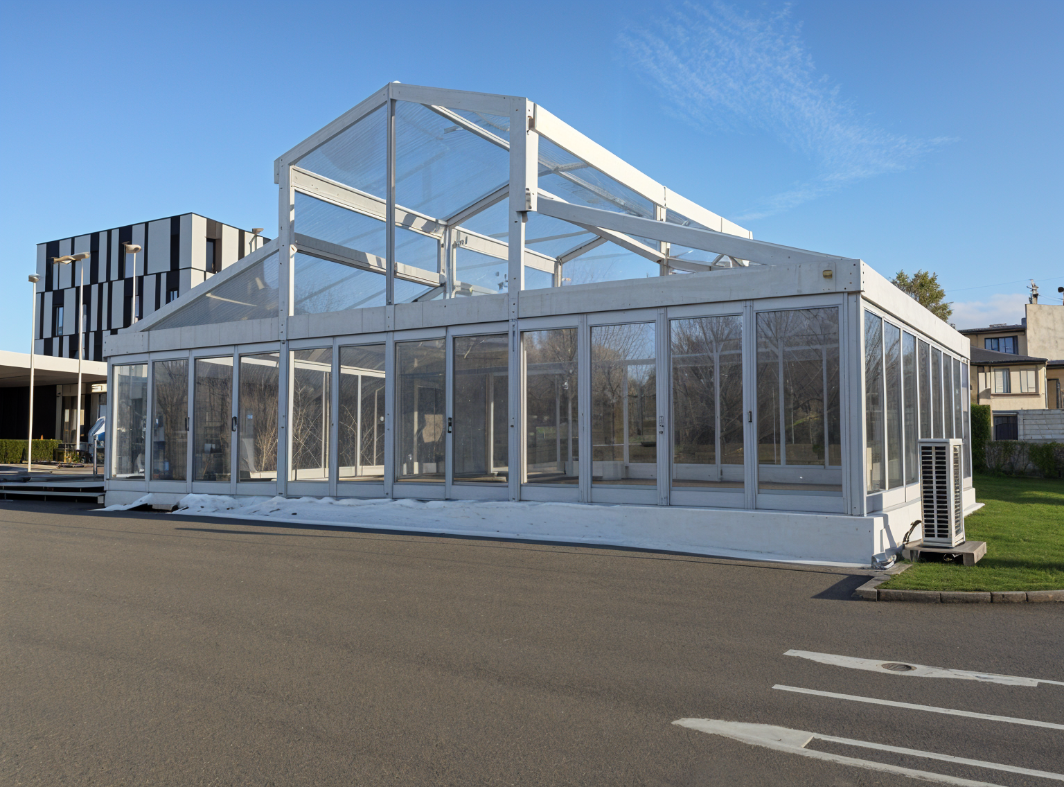 render a luxurious woman s walk in closet featuring sleek modern cabinetry with a light beige linen finish incorporate glass doors with subtle reflections creating a sense of openness use warm ambient lighting to evoke a cozy and inviting atmosphere the floor should be a smooth matte ivory tile add brass handles for a touch of sophistication the overall vibe should be elegant and serene with a focus on luxury and organization