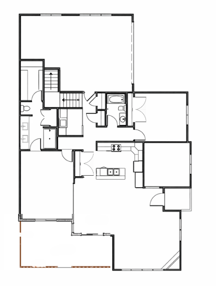 do not add any furniture or flooring keep this as a architectural blueprint very simple and clean do not change any of the floor plan or make any additions change the black lines to a navy blue and keep the patio lines a tan color