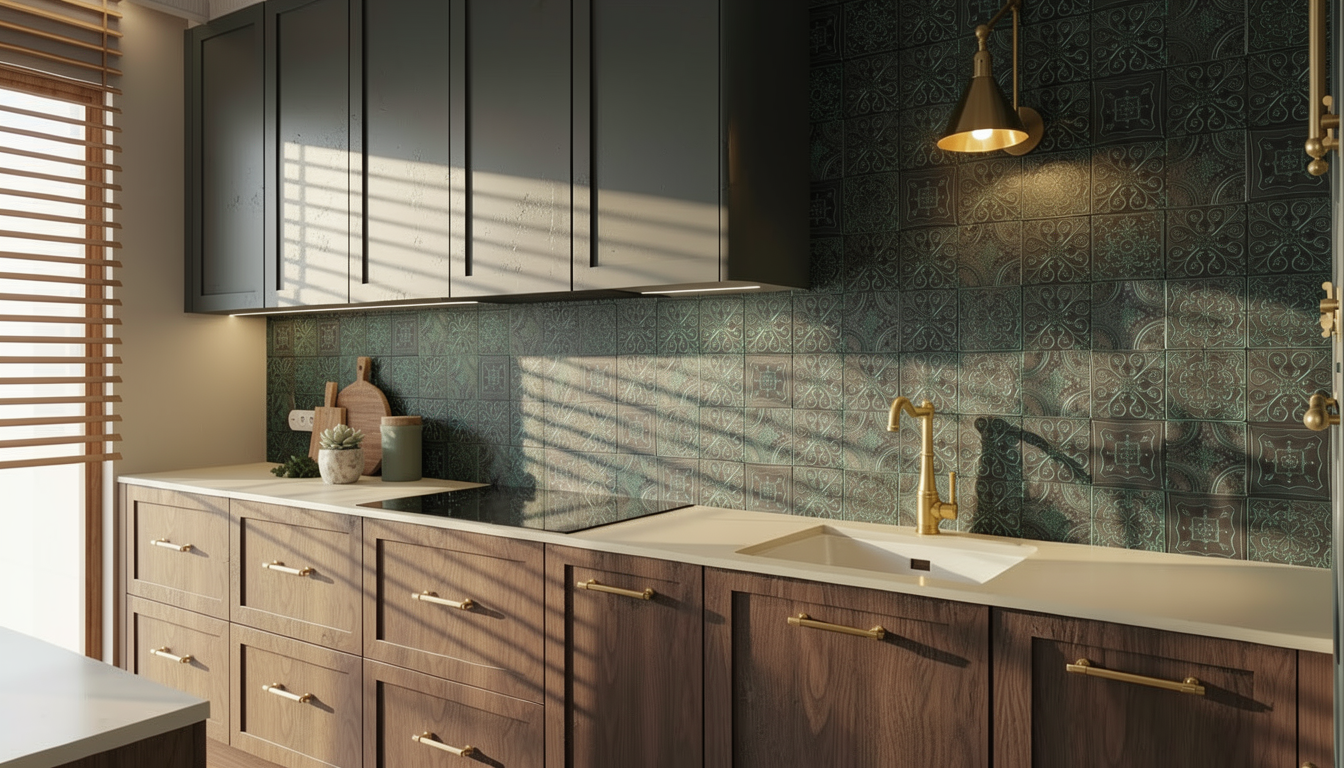 photorealistic interior render of the provided room keep exact same geometry walls ceiling beam and perspective add a custom built in open shelving unit open bookshelf under the ceiling beam on the right side the bookshelf must be aligned with the beam and fit perfectly underneath it floor to ceiling or beam height structure clean and minimal design style modern elegant thin shelves balanced proportions material warm wood walnut or matte painted white the shelves should be open no doors with a few decorative objects and books not cluttered do not modify walls openings beam shape or room proportions soft natural daylight realistic shadows high end interior render