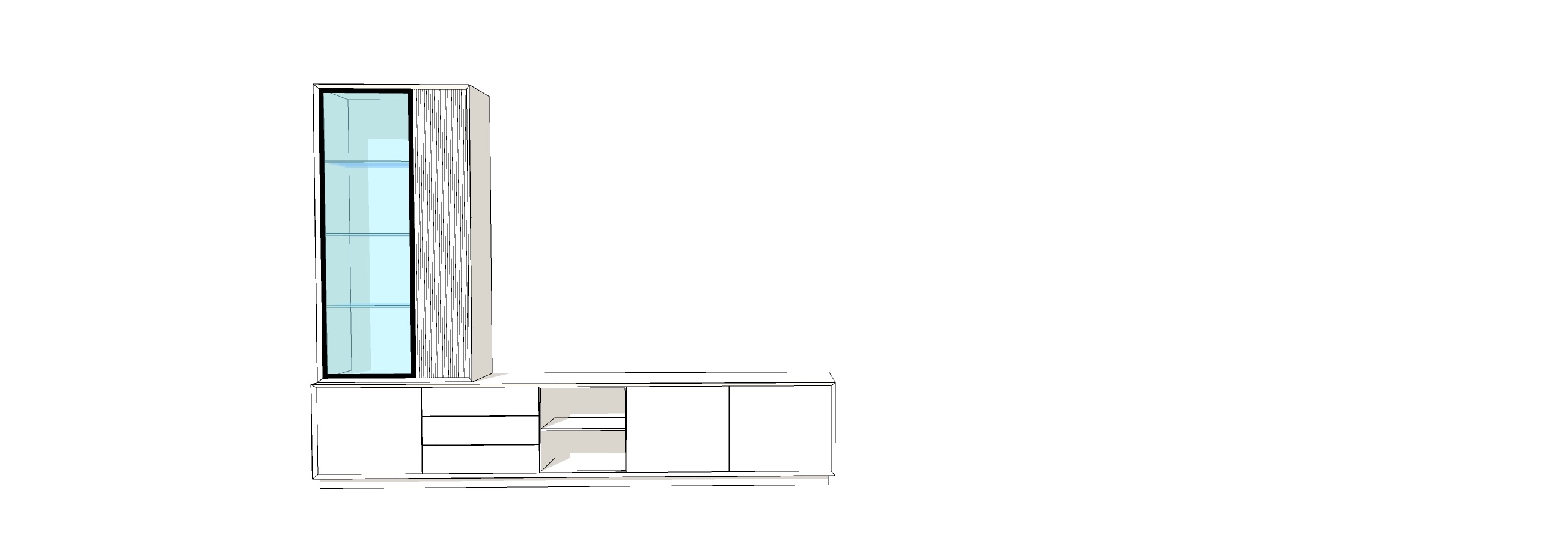 necesito crear una imagen foto realista de este mueble en un entorno de una vivienda con suelo de madera y paredes blancas a ade una tv sobre el mueble bajo y decora el interior de la vitrina la imagen debe ser fotorealista muy profesional con luz natural la textura del mobiliario es lacado mate en un tono topo claro y los detalles de vidrio son en cristal ahumado a ade alguna plantita para generar a sensaci n de hogar
