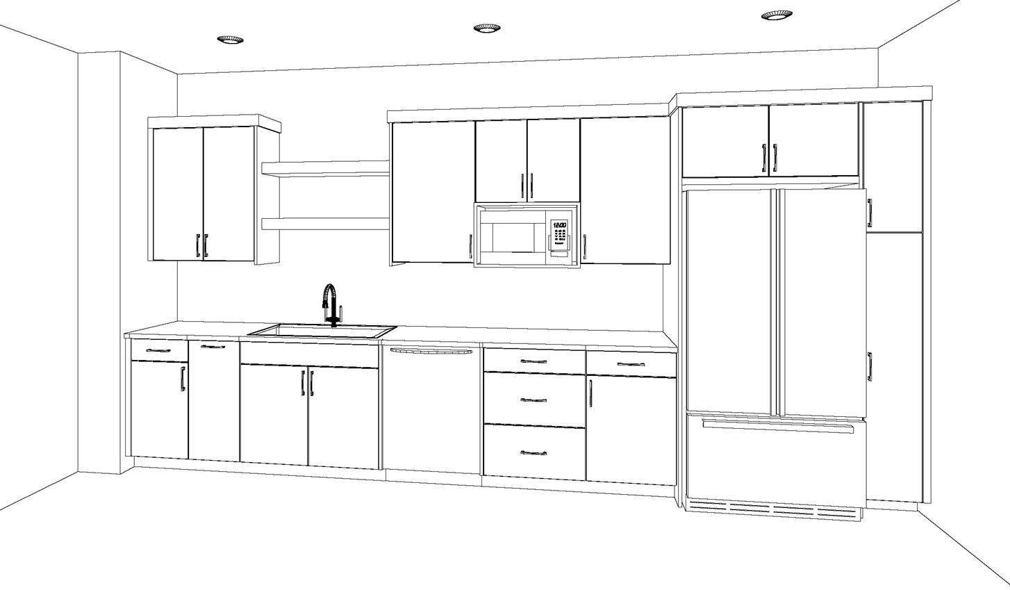 create a beautifully rendered image of a modern commercial break room the cabinets are a soft muted warm brown wood exuding a calm and contemporary feel the countertop is a matching light beige with a smooth texture the handles on the cabinets are sleek and black adding a touch of elegance the fridge is a stainless steel as is the dishwasher the backsplash is a subway tile and walls are a clean bright white enhancing the airy atmosphere the floor is a warm polished concrete complementing the overall neutral palette the lighting is soft and natural infusing the space with a welcoming and cozy ambiance