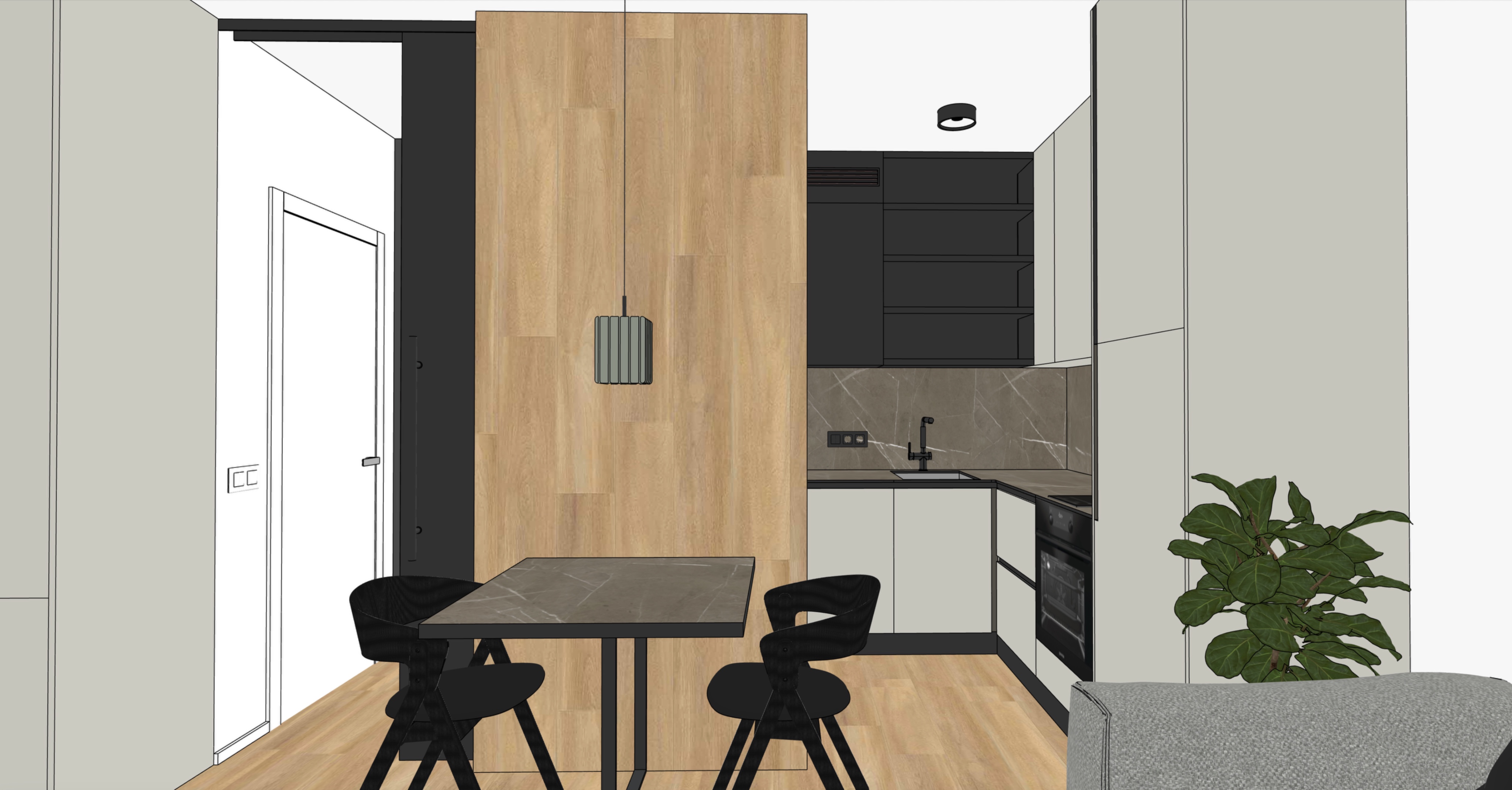 kitchen with dining corner modern style soft shadows kitchen cabinets in matt grey beige and anthracite finish