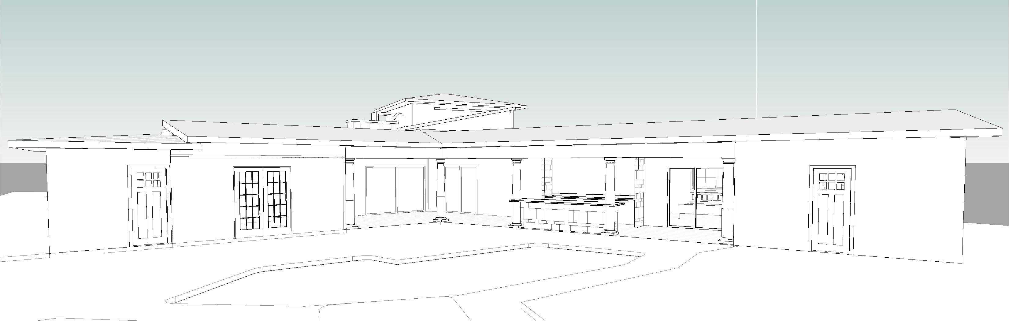 mediterranean revival exterior shot render this modern tuscan style house with pool and covered patio exterior with a serene and inviting atmosphere use a soft white color textured plaster finish for the walls and a light grey for the roof incorporate large clear glass windows reflecting the sky highlight the wooden doors with a rich mahogany color the columns and the base of the house should have a smooth white texture surrounding landscape should be lush with green grass and vibrant flowers like florida usa the sky should have few clouds deep blue with gentle white clouds the lighting should be warm as if during golden hour casting soft shadows around the structure architecture