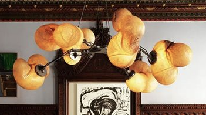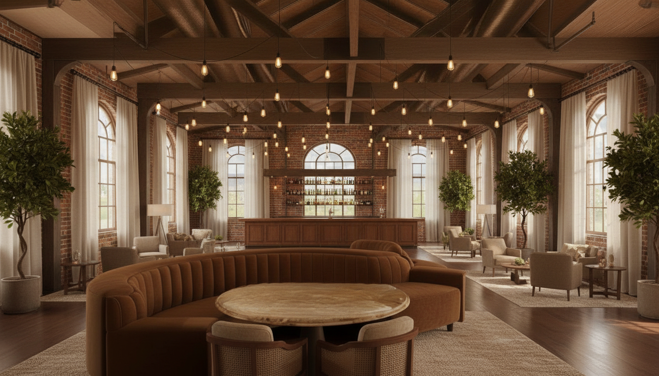 exterior shot use that chandelier three times down center push the bar back