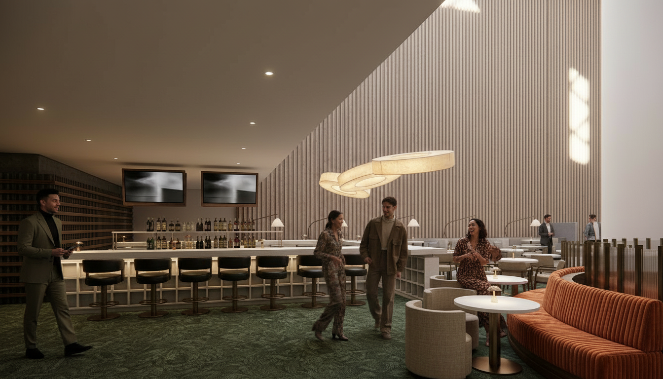 make image feel like an exciting hotel lobby bar maintain proportions and architecture of input image