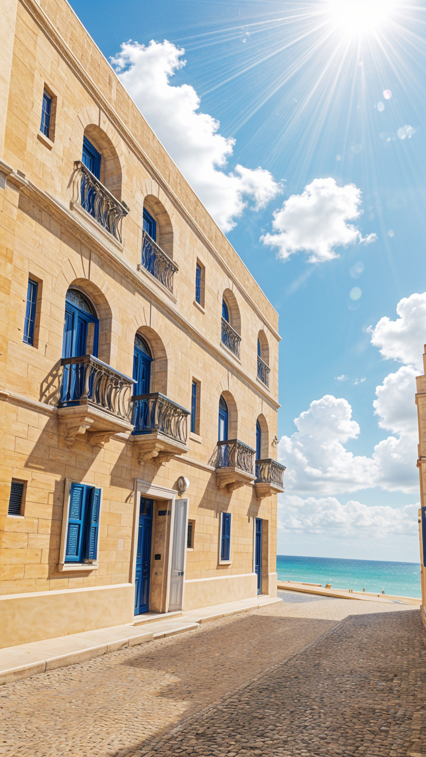 interior shot please show me this cozy bathroom in warm light with pale beige tiles and floor tiles a white sink bathtub and radiator the side of the bathtub is also covered with beige tiles medium brown wooden furniture the upper cabinet does not extend above the bathtub the wall above the sink is not mint wall paneling but a mirror the bathtub filler tap on the wall next to the bathtub is chrome and on the floor is a soft round pale mint colored rug