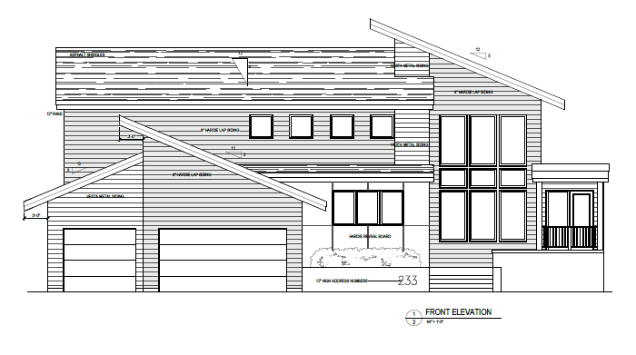 modernist exterior shot visualize a modern residential building with a contemporary design the building should have medium exterior walls with wood accents shingled roof large windows with reflective glass and sleek black accents along the edges the atmosphere should be bright light and airy with clear blue skies heavy bright sunlight on front exterior and the surrounding landscape should include lush green grass colorful flowering shrubs and heavy tall deciduous trees with autumn colored leaves architecture