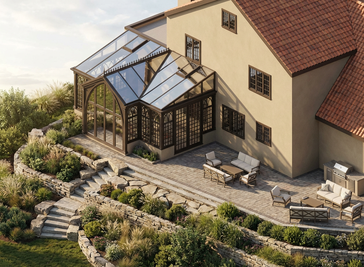 make this realistic the gray things are windows the black block is a stove and oven the sink is a farm sink
